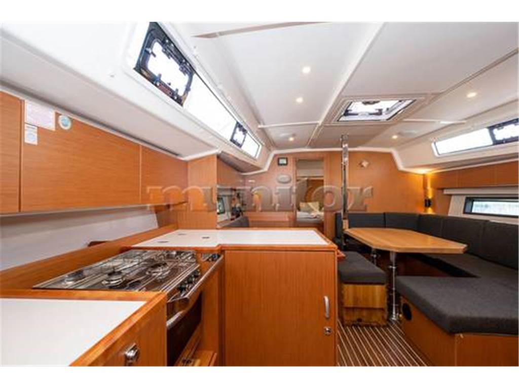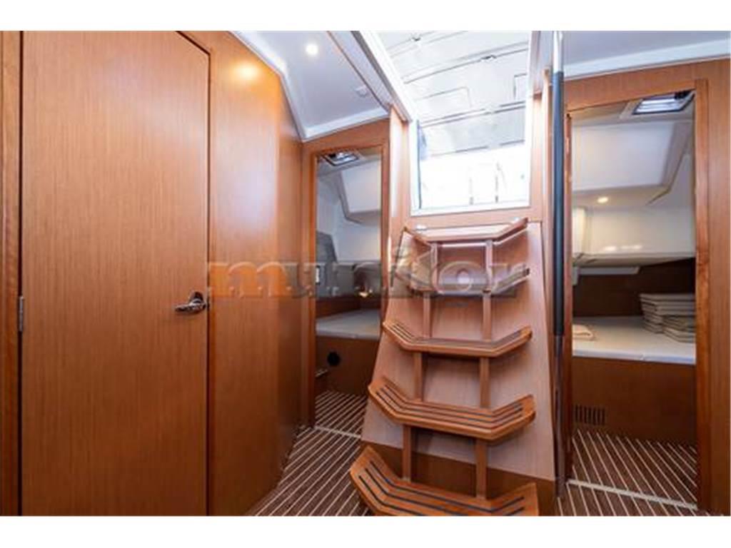 VHF, Ecoscandaglio, Riscaldamento, Pilota automatico, Doccia in pozzetto, Verricello elettrico, Impianto acqua calda, Serbatoio acque grigie, Plotter GPS, Anemometro, Sprayhood, Bimini top, Caricabatterie, Elica di prua, Impianto audio, Parabordi, Bussola, Piattaforma da bagno, Scaletta da bagno