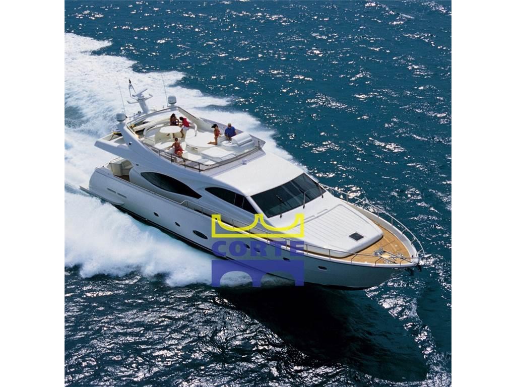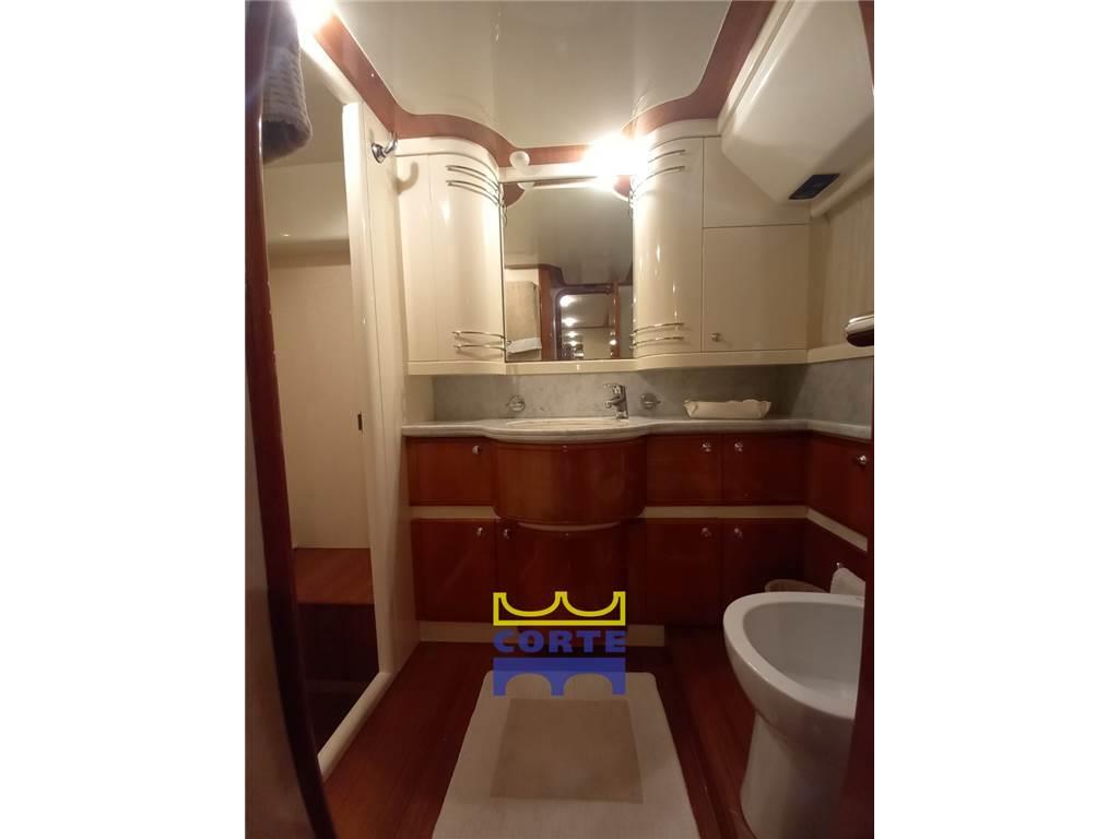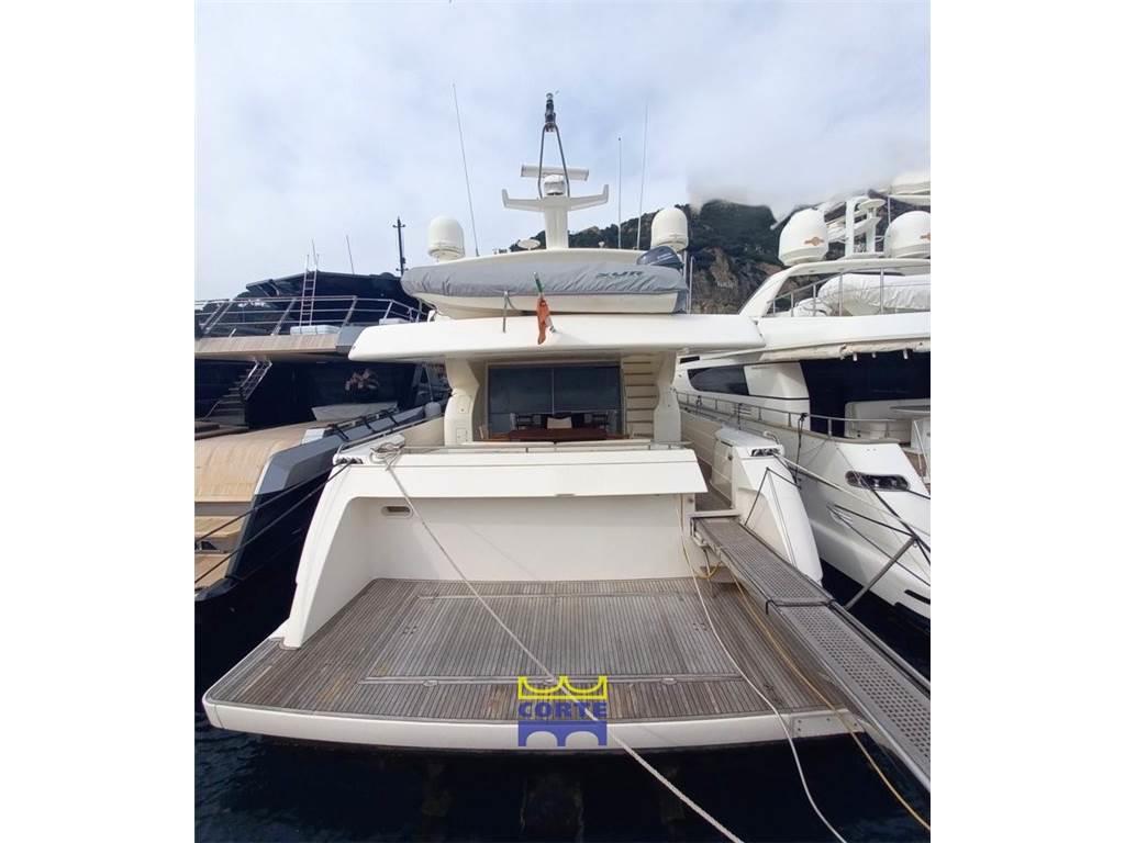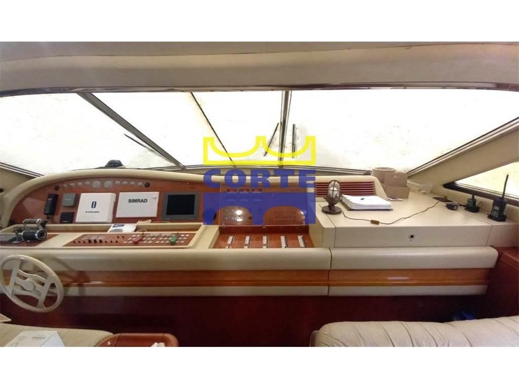 Allarme fumo/gas (sala macchine), Allarme motore, Allarme sentina, 2 Ancora, Angolo barra, Antenna radar, Autoclave, 7 Batterie, Bussola, Camminamenti laterali in teak, Caricabatterie, Cavo corrente di banchina, Comando motori elettronico, Computer di bordo, Contametri catena, Contamiglia, Display, Doccia esterna, Doppia timoneria, Ecoscandaglio, Elica di poppa - stern thruster, Elica di prua - bow thruster, Flap idraulici, GPS, Gruette per tender su fly, Impianto antincendio (vano motori), Indicatori Flaps, Lavaggio catena, Log, Luci di cortesia, Luci di navigazione, Monitor batteria, Motore fuoribordo per tender, Passerella, Piattaforma (di poppa in teak con apertura idraulica), Pilota automatico, Plotter con antenna GPS, Pompa di sentina automatica, Pompa di sentina elettrica, Pompa di sentina manuale, Ponte in teak, Porta ingresso, Porta laterale, Pozzetto Teak, Presa 220V banchina, Presa acqua banchina, Quadro comandi, Radar, Radio VHF, Rollbar, 2 Salpa Ancore Elettrico, Scaletta da bagno, Sedile Copilota, Tavolo pozzetto (in teak con sedie), Tender (completo di motore), Tromba, 2 Winch tonneggio di poppa, 2 Winch tonneggio di prua