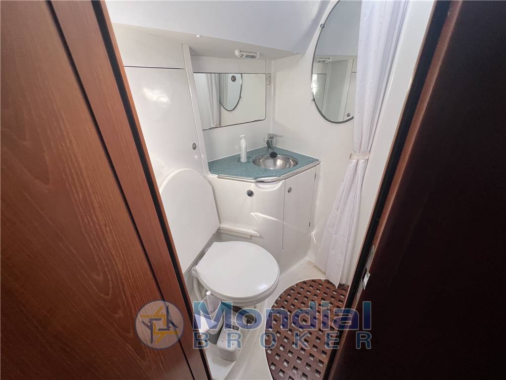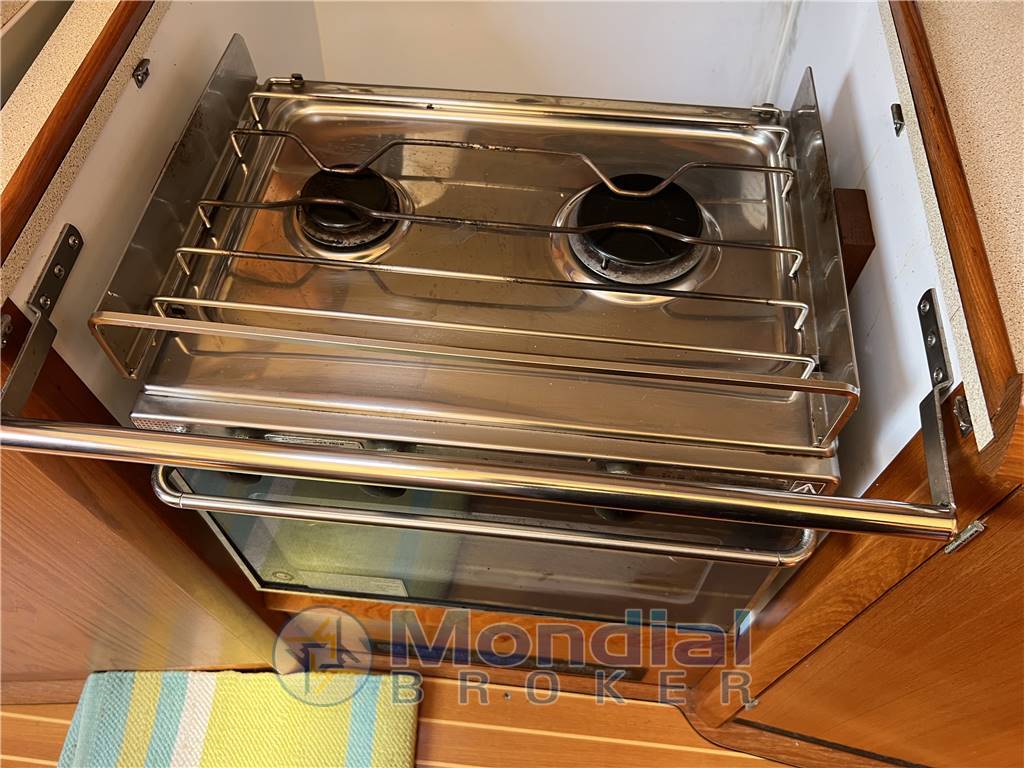 TRE CABINE - DUE BAGNI - CUCINA IN LINEA SULLA MURATA SINISTRA CON MACCHINA DEL GAS DUE FUOCHI CON FORNO - DOPPIO FRIGORIFERO - DOPPIO LAVELLO ACCIAIO INOX CON RUBINETTO MISCELATORE ACQUA CALDA E FREDDA - DINETTE CON DIVANO A "C" E CONTRAPPOSTO UN DIVANETTO CON AMPIO GAVONE - MOBILI CONTENITORI CON UN'OTTIMA CAPACITA' DI STIVAGGIO- TAVOLO DA CARTEGGIO SULLA MURATA DI DRITTA CON ALLOGGIATI VARI STRUMENTI ELETTRONICI IN MODO DA COSTITUIRE UNA COMODA POSTAZIONE PER TENERE SOTTO CONTROLLO LA NAVIGAZIONE - VANO MOTORE BEN INSONORIZZATO CON APERTURE CHE PERMETTONO UNA MANUTENZIONE AGEVOLE - I DUE BAGNI FORNITI ENTRAMBI CON WC ELETTRICI HANNO ENTRAMBI UN LAVELLO FORNITO DI RUBINETTO MISCELATORE MONO LEVA, QUELLO ARMATORIALE DI PRUA HA UNA CABINA DOCCIA SEPARATA- LE DUE CABINE DI POPPA HANNO ARMADI CON UNA BUONA CAPACITA' DI STIVAGGIO - TUTTA LA CUSCINERIA INTERNA STA IN OTTIME CONDIZIONI E HA UNA COPERTURA REMOVIBILE