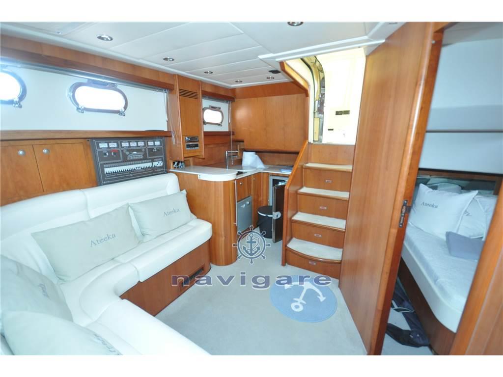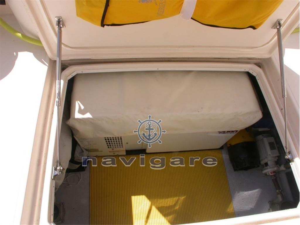 Eco, Gps, Log, Autopilota, Vhf, hard top, aria condizionata, lavastoviglie, cabina armatoriale, cabina ospiti, parquet interno in ciliegio, tendine interne alla veneziana - pavimento interno in teak - la barca e disposta: cabina armatoriale a prua con bagno, doccia con porta girevole - cabina ospiti letto alla francese - bagno con lavandino e doccia (tenda) - dinette con cucina con fuochi elettrici - aspiratore - frigo grande con ghiacciaia , lavastoviglie - forno a microonde e vari cassetti e sportelli per riporre le utensili - ampio divano ad "L" con tavolo - dinette esterna al pozzetto superiore con mobile cucina a scomparsa con n. due fuochi a gas - ulteriore frigo inox con n. due cassetti sotto il sedile guida - divano ad "L" con tavolo a libro.