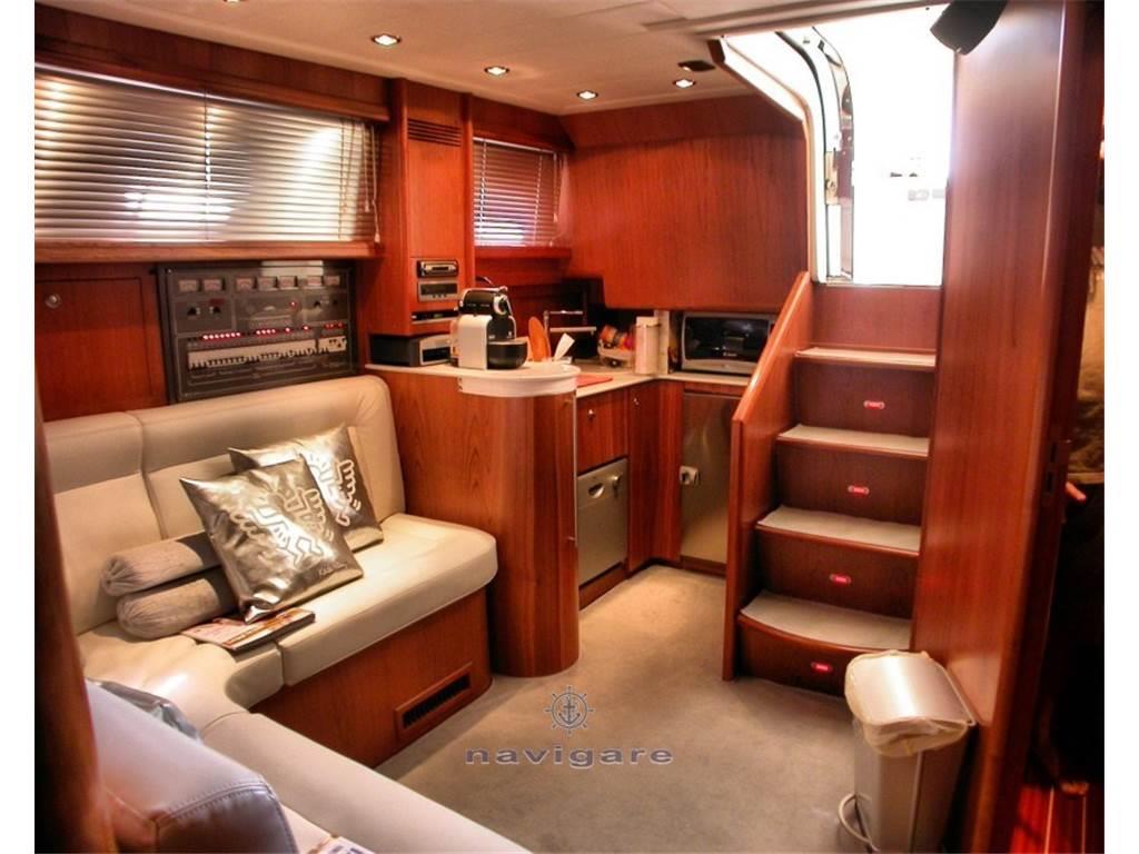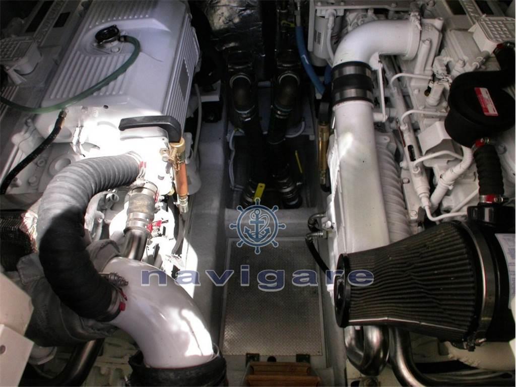 hard top con apertura elettrica/idraulica, elica side power 95 kg. a 24 volt, leve comando motori elettroniche ZF con sincronizzatore, pompa lavaggio acqua di mare + by-pass banchina, prese acqua dolce salata nel pozzetto e a prua, rifiniture esterne laccate bianche, assi/eliche diam. maggiorato da 55, timoni e cavalletti porta-assi inox, impianto aspirapolvere centralizzato.