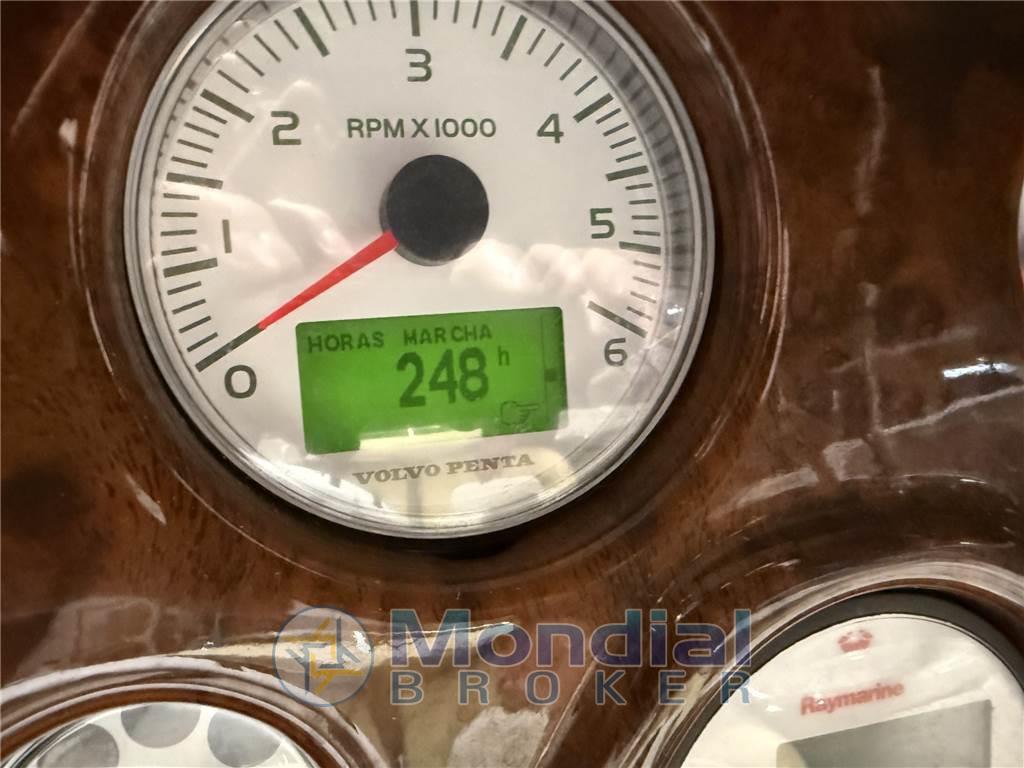 Allarme motore, Autoclave, Batterie, Bussola, Caricabatterie, Cavo corrente di banchina, Contamiglia, Doccia esterna, Ecoscandaglio, Luci di navigazione, Piattaforma, Pompa di sentina automatica, Pompa di sentina manuale, Pozzetto Teak, Presa 220V banchina, Salpa Ancore Elettrico, Scaletta da bagno, Tromba