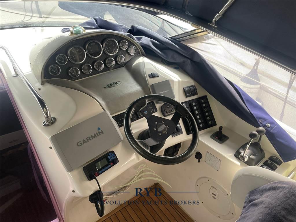 Allarme motore, Doccia esterna, Elica di prua - bow thruster, Flap idraulici, Luci di cortesia, Piattaforma, Pompa di sentina elettrica, Pompa di sentina manuale, Pozzetto Teak, Salpa Ancore Elettrico, Scaletta da bagno, Tavolo pozzetto.