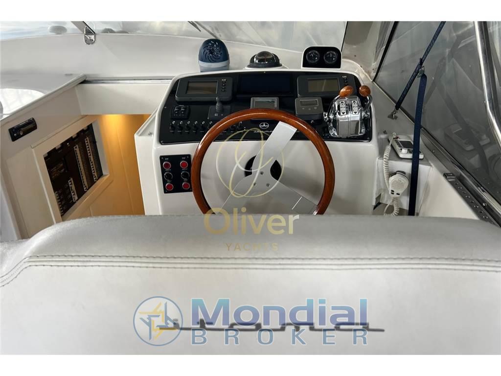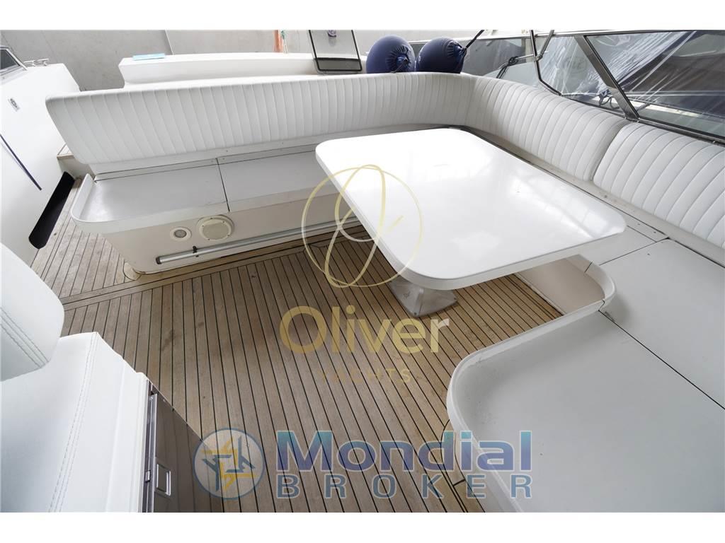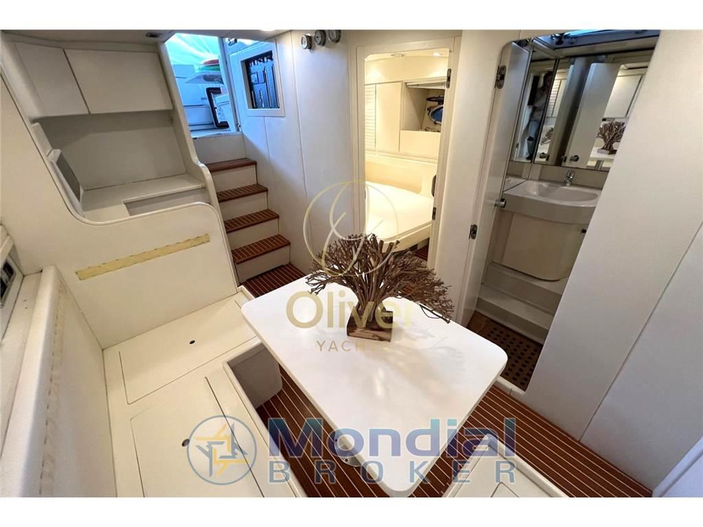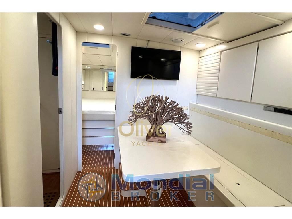 Allarme fumo/gas, Allarme motore, Allarme sentina, Alternatore, Ancora, Angolo barra, Apertura Vano Motore Elettrica, Autoclave, Batterie, Bussola, Cavo corrente di banchina, Contametri catena, Contamiglia, Contaore, Corrimano, Cronometro, Display (GARMIN), Doccia esterna, Ecoscandaglio (GARMIN), Elica di prua - bow thruster, Flap elettrici, GPS (GARMIN), Log (GARMIN), Luci di cortesia, Luci di navigazione, Luci subacquee, Monitor batteria, Monitor dei consumi, Parabordi, Passerella, Piattaforma, Pilota automatico (RAYMARINE), Plotter (GARMIN), Plotter con antenna GPS (GARMIN), Pompa di sentina automatica, Pompa di sentina elettrica, Pompa di sentina manuale, Porta ingresso, Pozzetto Teak, Presa 220V banchina, Presa acqua banchina, Quadro comandi, Radio VHF, Salpa Ancore Elettrico, Scaletta da bagno, Sedile Copilota, Strumenti di misura per motori, Tavolo pozzetto, Tromba
