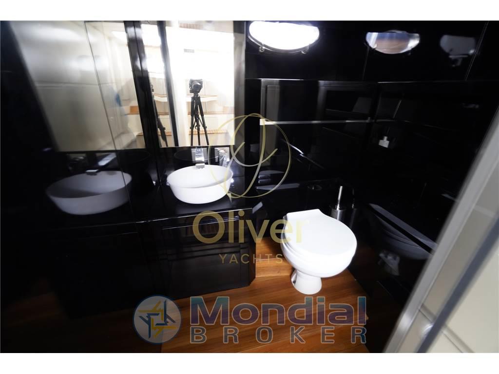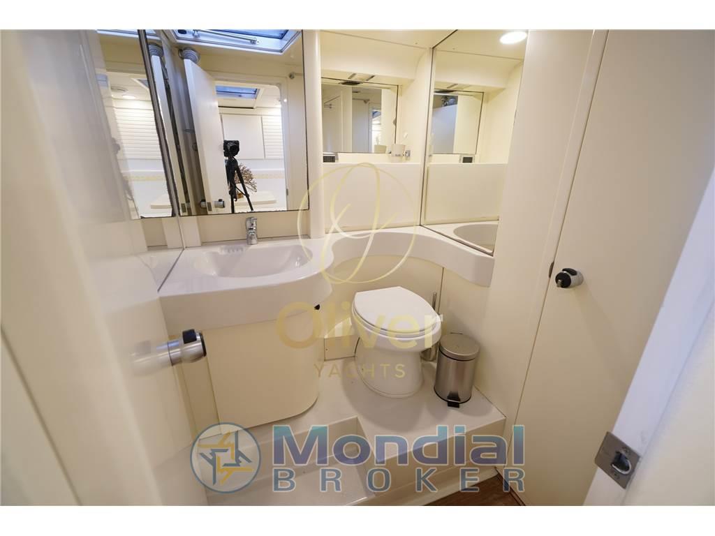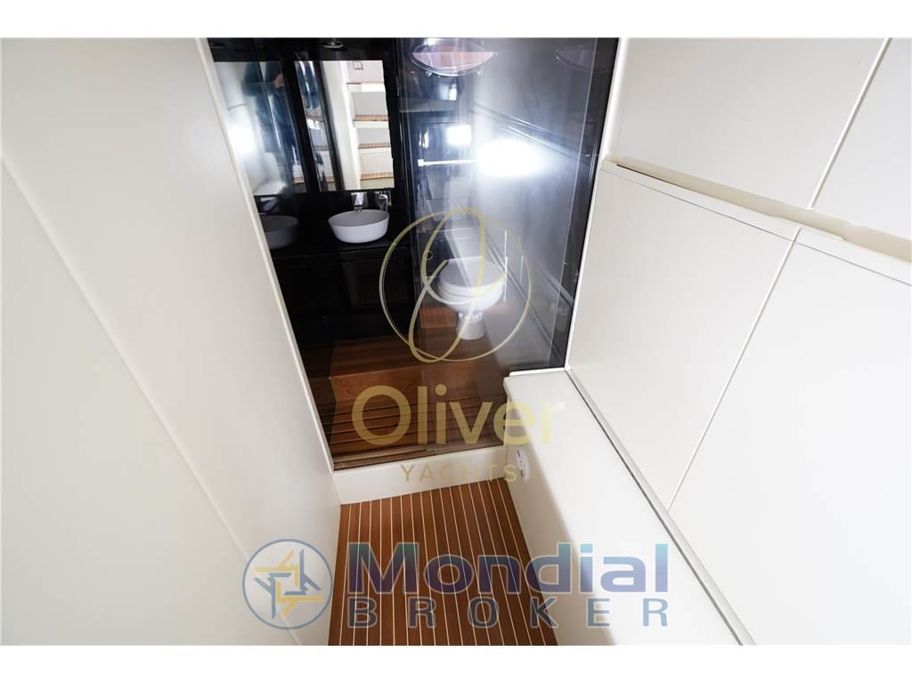 Il layout prevede due cabine principali servite da un bagno, a cui si aggiunge un secondo bagno realizzato nella precedente cabina marinaio, oggi trasformata in una cabina ospiti indipendente. Un upgrade concreto che aumenta la fruibilità dell’imbarcazione e la rende più versatile rispetto alla configurazione originale.