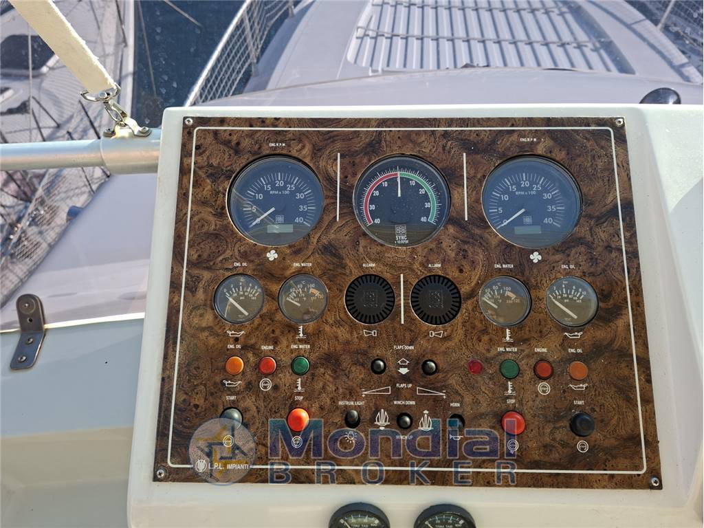 Bussole di governo, angolo di barra , Gps Map Garmin 4010, VHF , ecoscandaglio, log, allarme motori , contagiri , pressione olio motori ,pressione olio invertitori , temperatura acqua