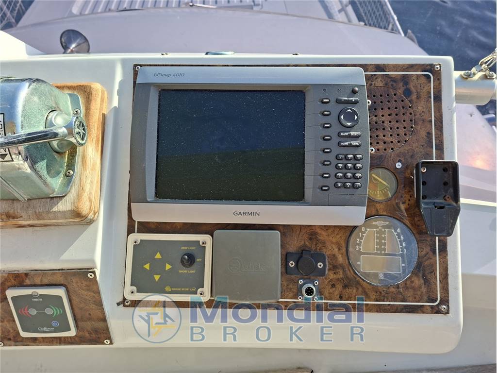 Verricello ancora elettrico con contacatena, elica di prua , doppia timoneria , passerella elettroidraulica; spiaggetta ,pozzetto e fly bridge in teak , pompe di sentina manuale ed elettriche automatiche, presa 220 banchina, gruppo elettrogeno 3,5 kW , clima reversibile caldo/freddo prese interne 12V e 220V serbatoio acque nere, WC elettrici , doccia esterna,