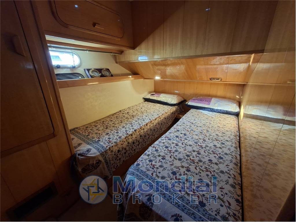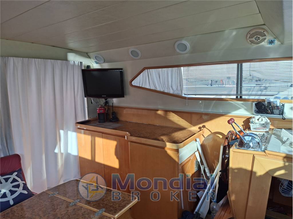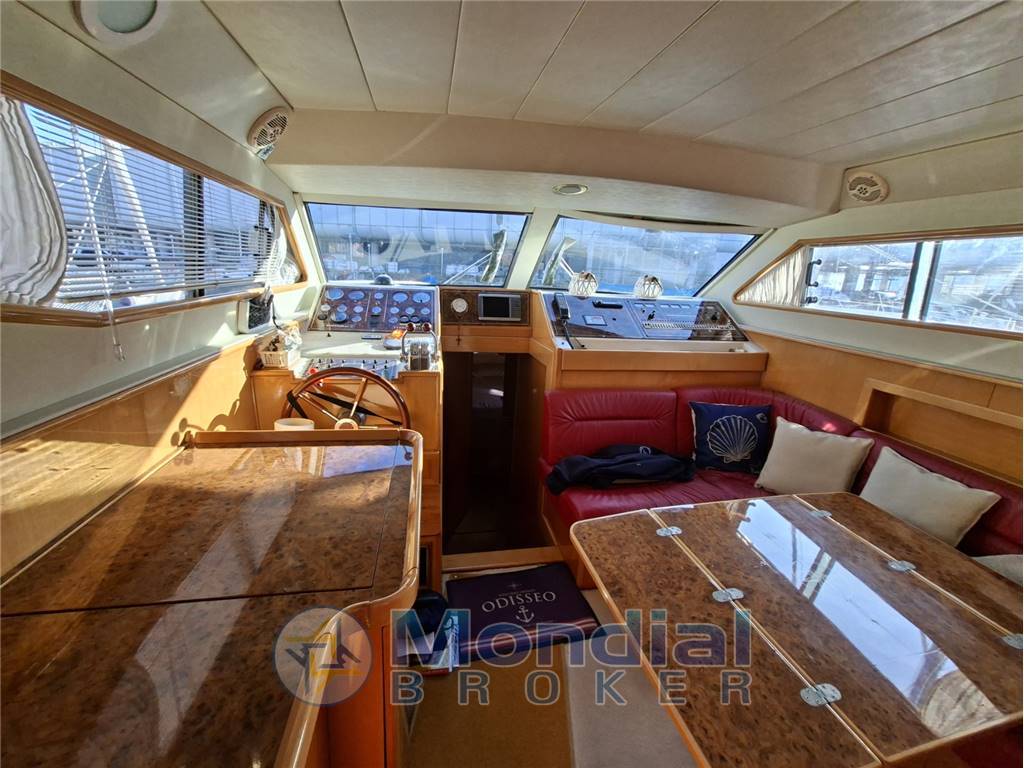 scaletta bagno, impianto con due TV (dinette e cabina prua) , stereo casse interne/esterne, tender + motore , tavolino e poltroncine pozzetto, asse di rispetto, cucina a gas , forno a microonde, due frigo (cucina e quadrato), tuga: cuscini; flybridge: divani con cuscini, bimini, teli copertura; pozzetto: tendalino e cagnaro chiusura totale.