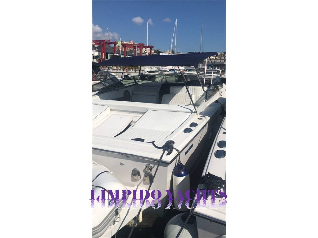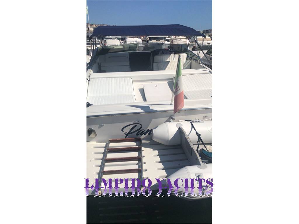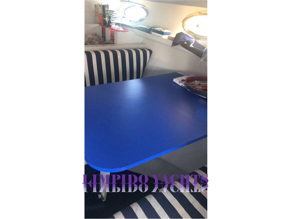 Disposizione interni ed esterni: ampio prendisole di poppa con tappezzerie complete, plancia di comando con seduta pilota e co pilota, cabina armatoriale a prua, dinette convertible in posti letto, WC , divano convertibile, cucina con lavandino, piano cottura e frigo.