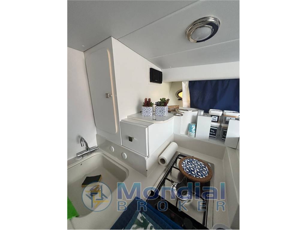 Cabina di prua separata con letto matrimoniale, a centro barca dinette con tavolo trasformabili in letto 2 posti più ulteriore divanetto usufruibile come ulteriore posto letto. Bagno separato + cucina completa con frigo - fuochi e lavabo.