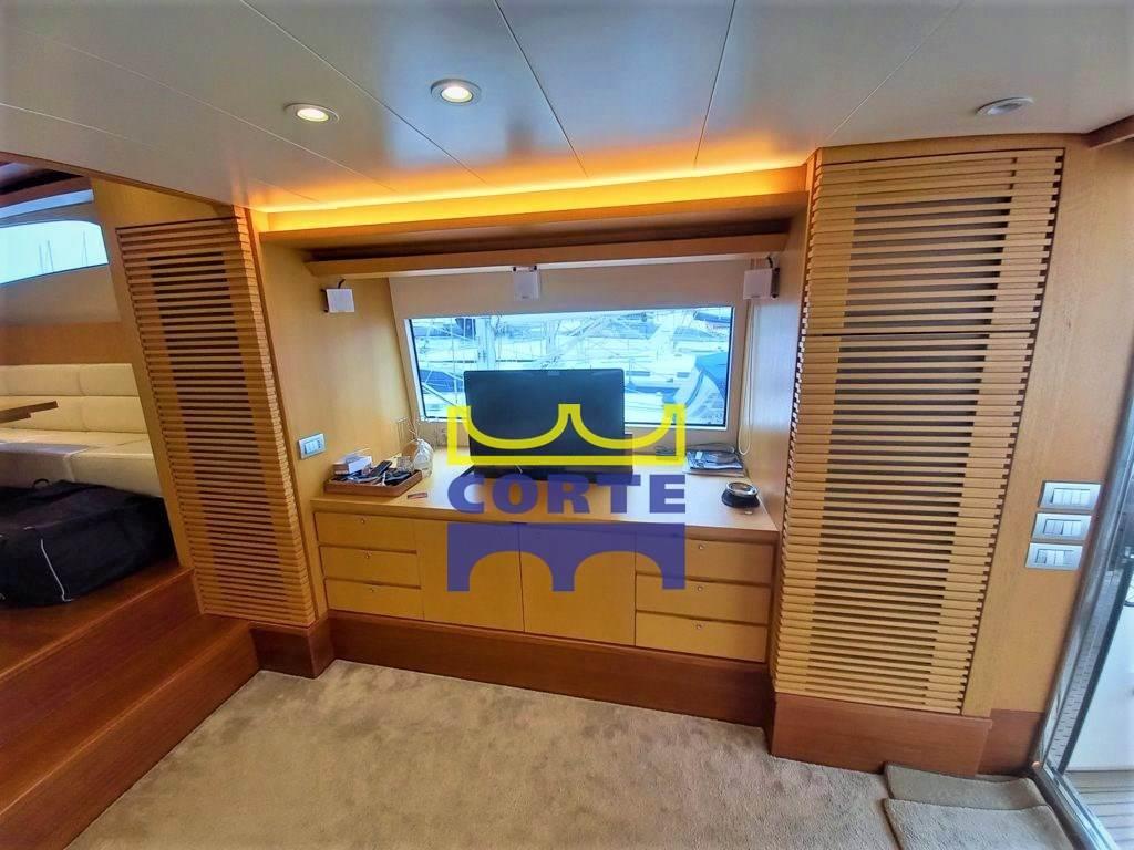 Antenna Satellitare TV (Seatel), BBQ/ Grill (sul fly), Bimini (top fly), Boiler (elettrico), Clima reversibile (separato in ogni locale), Congelatore, Copripozzetto, Cucina, Cuscineria completa, Dissalatore, Forno, Frigorifero esterno, Frigorifero interno, Impianto TV, Inverter, Lavasciuga, Lavastoviglie, Meccanismo saliscendi per TV (salone), Piastra in vetroceramica, Prese interne 12v, Prese interne 220v, Telo copriconsolle, Telo coprisedile, Tendalino (prua), 2 TV (32'' salone e cabina armatore), WC marino elettrico, Winecooler, Tridata Raymarine, Raymarine C80 sul flybridge, tendalini invernali ed estivi, moquette nelle cabine nuova, plancetta idraulica a scomparsa, mobile bar fly con lavello, frigo e grill, fly in teak, tendalini invernali completi, tendalino chiusura pozzetto e flybridge nuovi, impianto Apple tv,