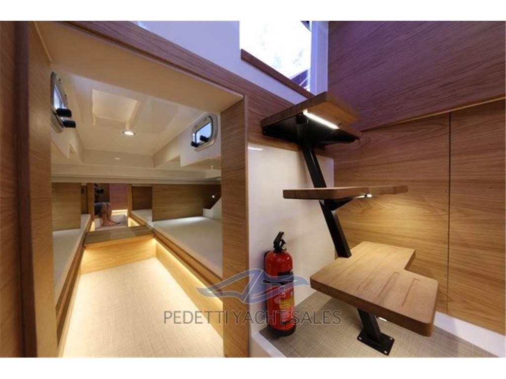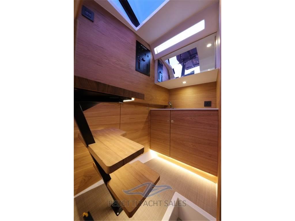 Il D34 Open by De Antonio Yachts si caratterizza, oltre che per l'utilizzo del sistema di fuoribordo nascosti tipici del cantiere spagnolo, per il suo design innovativo; oltre alle linee eleganti e sportive, il D34 adotta soluzioni tecniche che permettono di ricavare un sorprendente spazio a bordo.