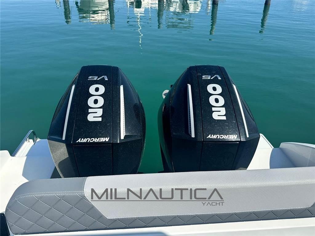 Allarme motore, Allarme sentina, Auto-Trim, Colorazione speciale, Doccia esterna, Flap elettrici, Luci di cortesia, Luci subacquee, Pompa di sentina elettrica, Pompa di sentina manuale, Presa 220V banchina, Scaletta da bagno, Tavolo pozzetto, Tromba, T-Top.