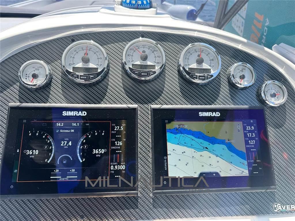 Bussola, Comando motori elettronico, Display, Ecoscandaglio, 2 GPS, Interfaccia, Pilota automatico, Radio VHF.