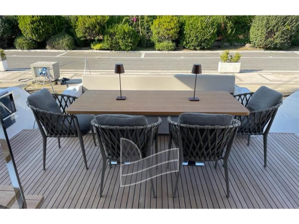 Allarme motore, Allarme sentina, Autogonfiabile, Doccia esterna, Elica di prua - bow thruster, Flap idraulici, Impianto antincendio, Passerella (IDRAULICA), Piattaforma, Pompa di sentina automatica, Pozzetto Teak, Raddrizzatore, Rollbar, Salpa Ancore Elettrico, Tender, Winch tonneggio di poppa.