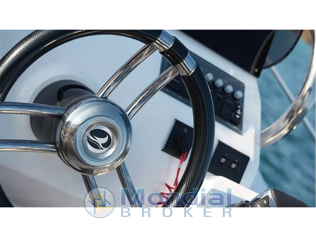 ACCESSORI EXTRA INCLUSI: Doppia batteria con deviatore (2 x 100 AH), flaps elettrici lenco, impianto stereo fusio RA60KCWBLUETOOTH con 2 altoparlanti fusion 6", frigorifero elettrico con incasso, verricello elettrico con catena ed ancora, placette di poppa in vetroresina.