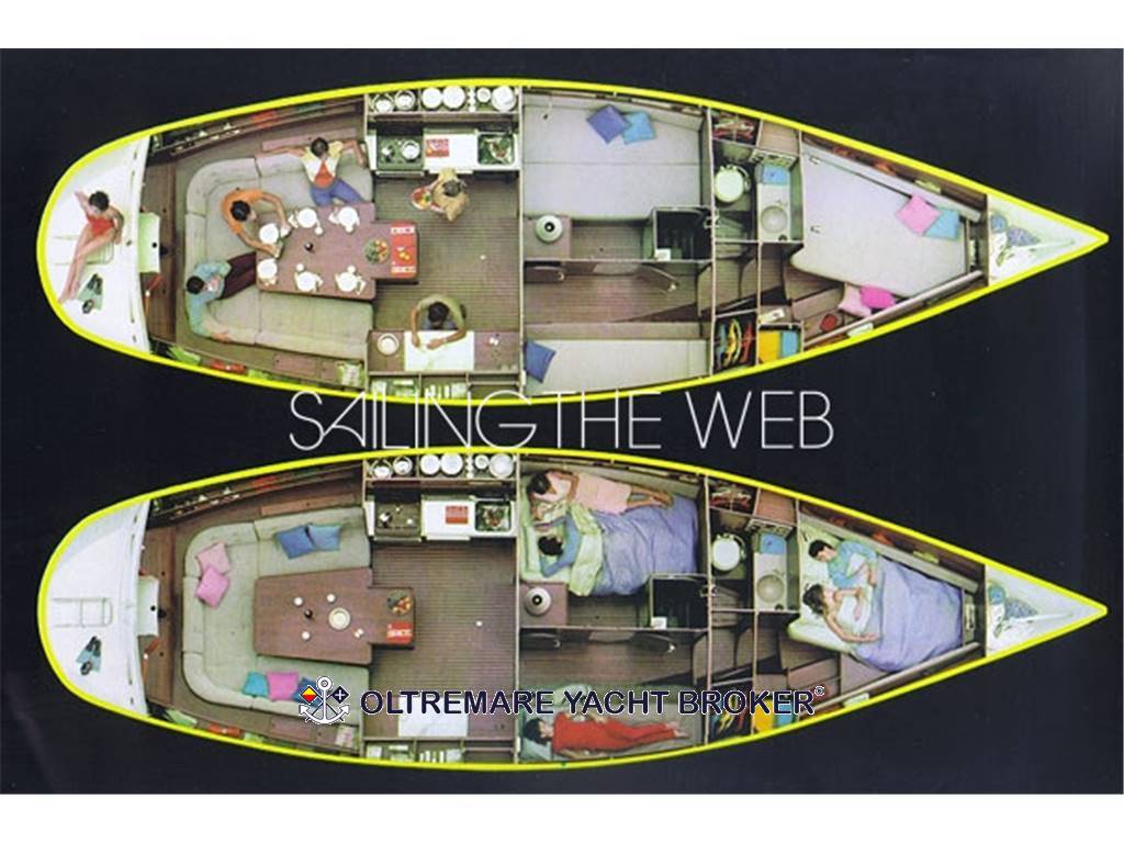PROGETTO GRUPPO FINOT - il Comet 11 ha segnato una piccola rivoluzione. Il baglio massimo arretrato, il grande vetro fumé che fascia l’intera tuga, ma soprattutto l’inedita disposizione degli interni, con il grande, panoramico, quadrato a poppa erano soluzioni mai viste, che conquistarono subito gli utenti. Progettato dal Groupe Finot, il Comet 11 è una barca da crociera, solida, semplice da portare, ben equilibrata. Il pozzetto è ben riparato. Sottocoperta i pregi maggiori, con un quadrato “salotto” che occupa metà barca, la cabina armatoriale al centro con due cuccette di fronte, il locale wc e un’altra cabina a prua. Il tutto molto ben rifinito.