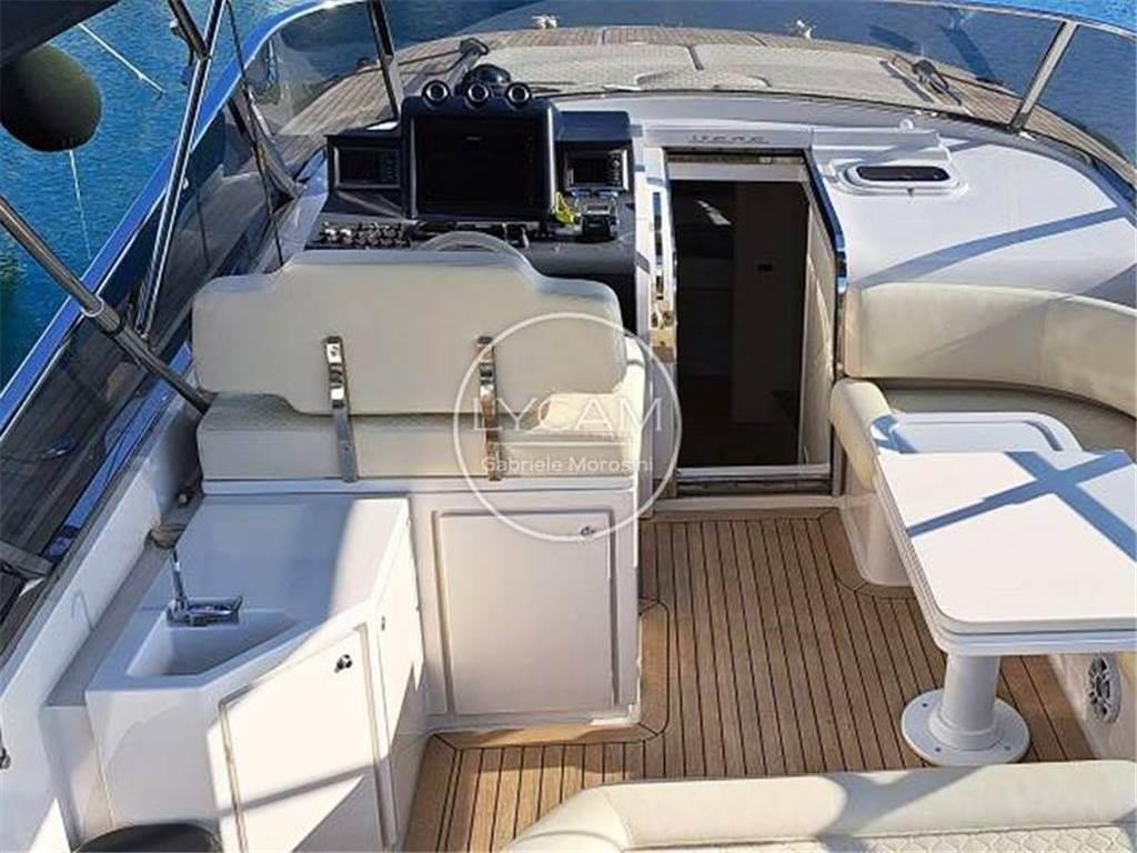 Luci di navigazione; Luce di fonda; Sirena; Tergicristalli; Bitte ormeggio; Elica di prua; Asta bandiera; Teak plancia poppiera; Scaletta bagno; Doccia pozzetto; Teak pozzetto; Tendalino; Cuscinerie prendisole; Plancia poppiera idraulica; Aria condizionata; Generatore; Docking station fusion per musica; Altoparlanti pozzetto; Batterie; Caricabatterie; Stacca batterie; Presa 220V; Boiler; Autoclave; Tavolo pozzetto; Frigo pozzetto; Teak coperta; Verricello salpa ancora elettrico; Mezzomarinaio