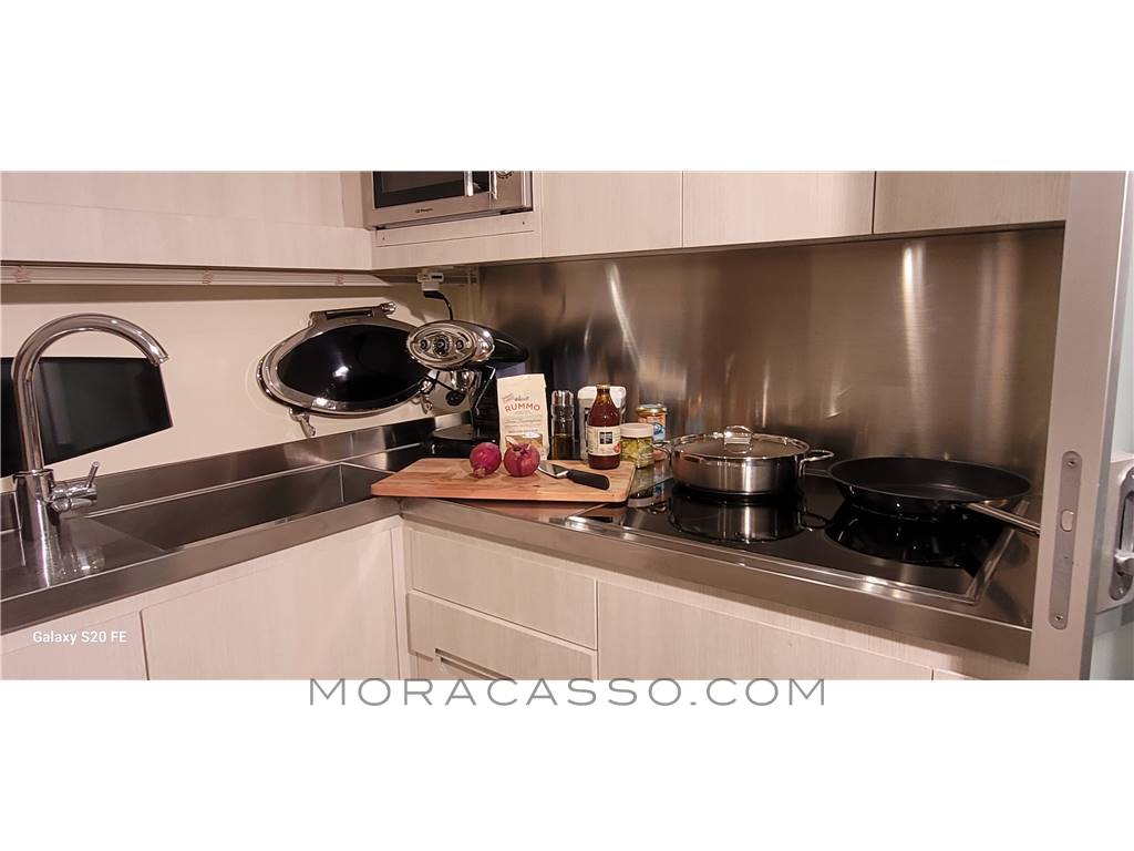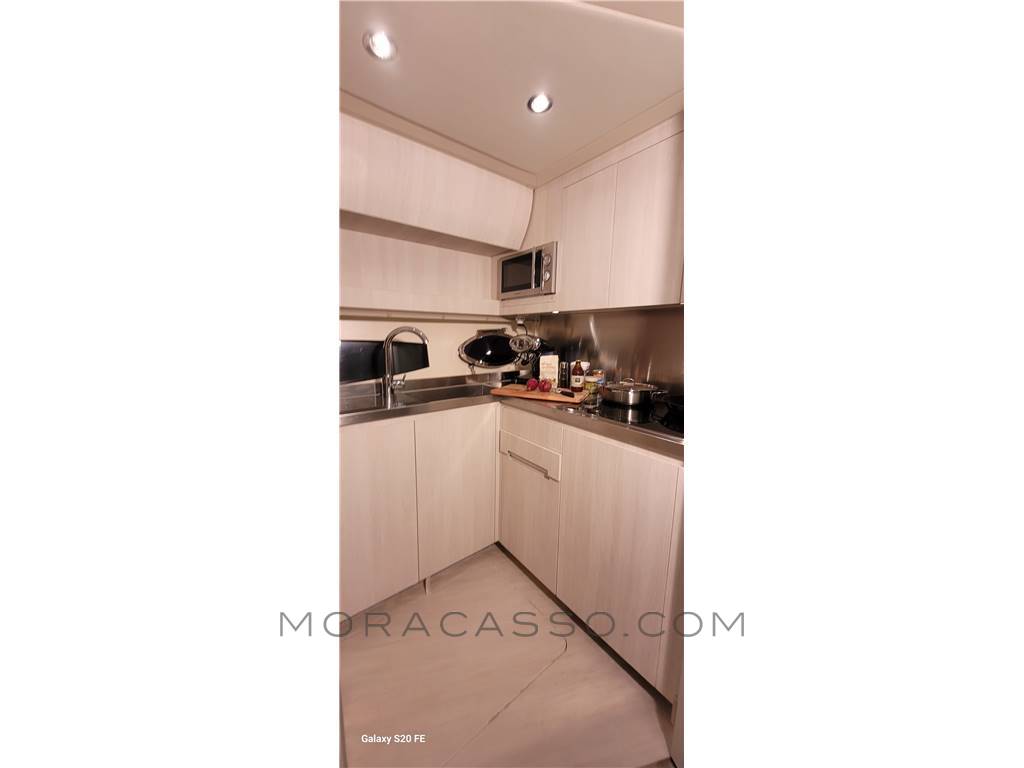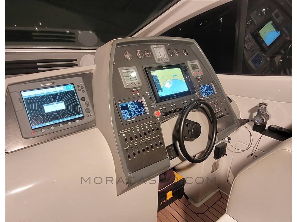 - Timoneria a destra, cruscotto con plancia in finitura carbonio, strumenti di navigazione, controllo motori, interruttori e spie