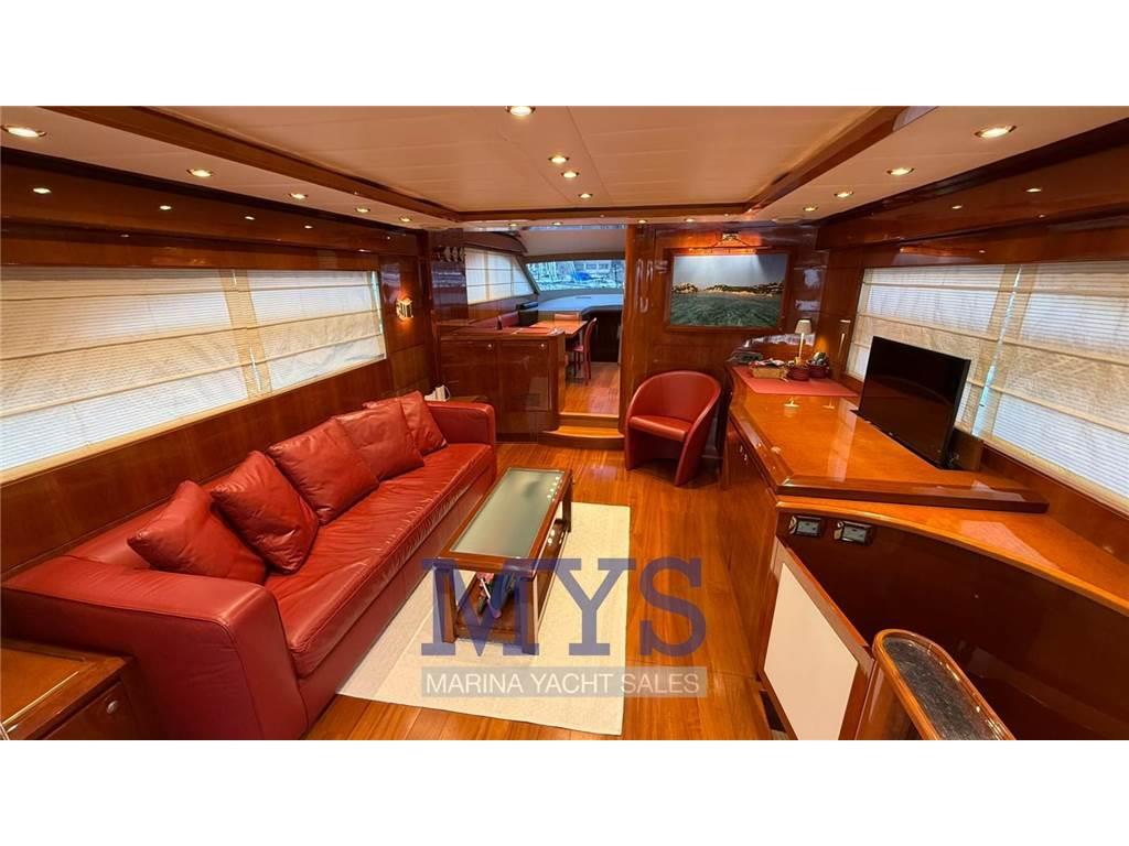 Interni in essenza di ciliegio lucido, finiture in pelle, ampio salone con divano a L - mobile bar con TV a scomparsa - Zona pranzo per 8 persone - Consolle di pilotaggio interna -