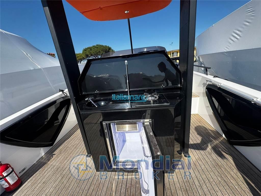 Allarme motore, Ancora, Doccia esterna, Elica di prua - bow thruster, Lavandino nel Pozzetto, Luci di cortesia, Piattaforma (in teak), Pompa di sentina elettrica, Pompa di sentina manuale, Pozzetto Teak, Presa 220V banchina, Salpa Ancore Elettrico, Scaletta da bagno, T-Top.