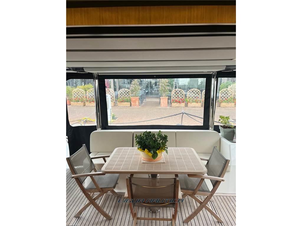 AIS, Allarme fumo/gas, Allarme motore, Allarme sentina, Ancora, Antenna radar, Batterie, Bussola, Camminamenti laterali in teak, Caricabatterie, Cavo corrente di banchina, Colorazione speciale (Rosso), Contametri catena, Display, Doccia esterna, Doppia timoneria, Ecoscandaglio, Elica di prua - bow thruster, Fari fissi a poppa, Flap elettrici, GPS, Impianto antincendio, Indicatori Flaps, Joystick, Lavaggio catena, Luci di cortesia, Luci di navigazione, Luci subacquee, Monitor batteria, Passerella, Piattaforma, Pilota automatico, Plotter con antenna GPS, Pompa di sentina elettrica, Porta ingresso, Porta laterale, Pozzetto Teak, Presa 220V banchina, Presa acqua banchina, Radar, Radio VHF, Salpa Ancore Elettrico, Scaletta da bagno, Sedile Copilota, Stabilizzatori (Gyro 5 Seakeeper), Tavolo pozzetto, Tromba, T-Top, Winch Elettrico, Winch tonneggio di poppa