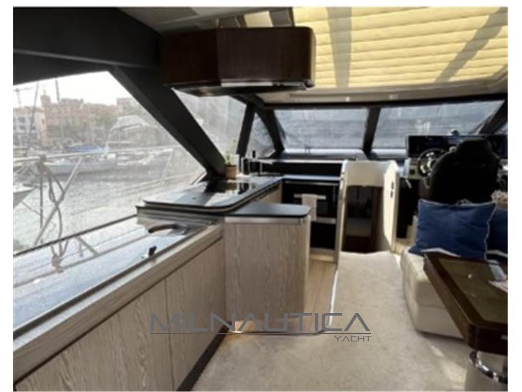 Allarme fumo/gas, Allarme motore, Auto Dynamic Trim Interceptor, Camminamenti laterali in teak, Colorazione speciale, Elica di prua - bow thruster, Flap elettrici, Luci di cortesia, Luci subacquee, Passerella, Piattaforma, Ponte in teak, Pozzetto Teak, Presa 220V banchina.