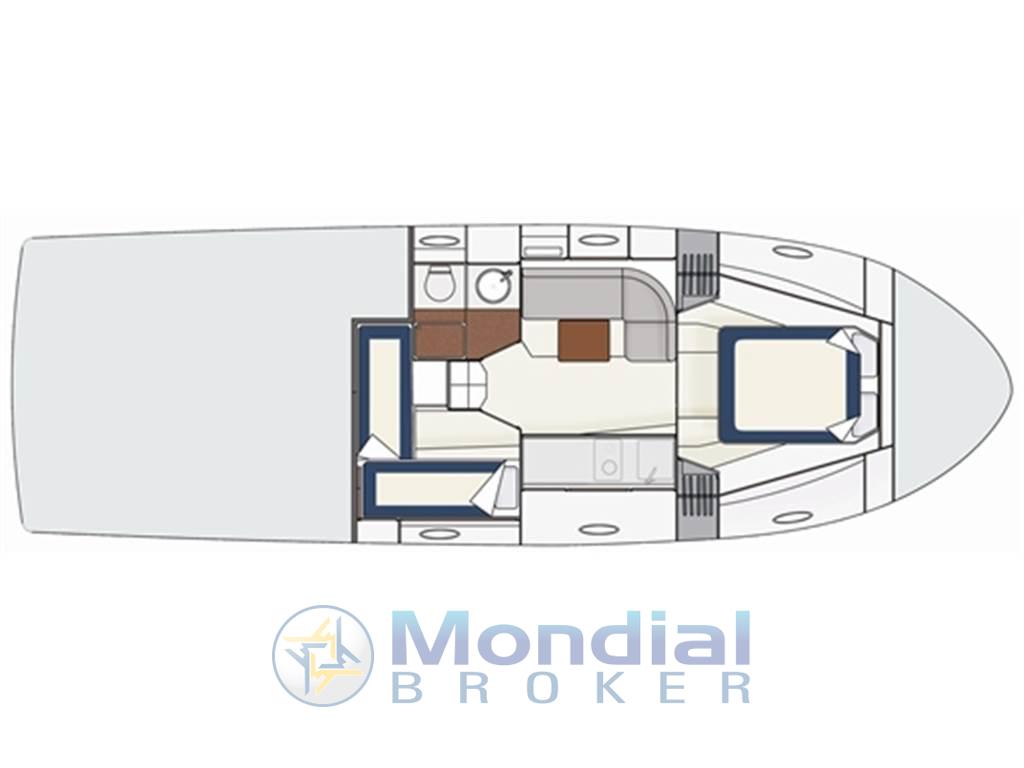Cabina armatoriale con letto matrimoniale - cabina ospiti con due letti incrociati - bagno - dinette trasformabile.