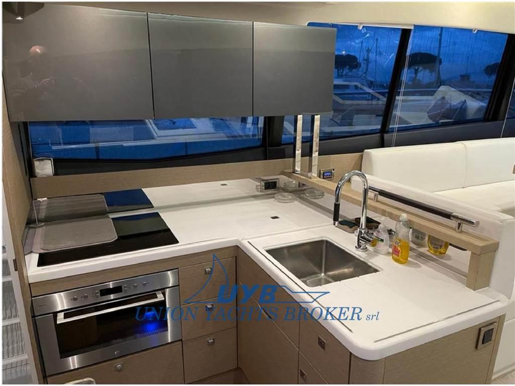 Il grande Fly è dotato di Frigorifero e Ice maker con penisola e lavandino e grande prendisole.