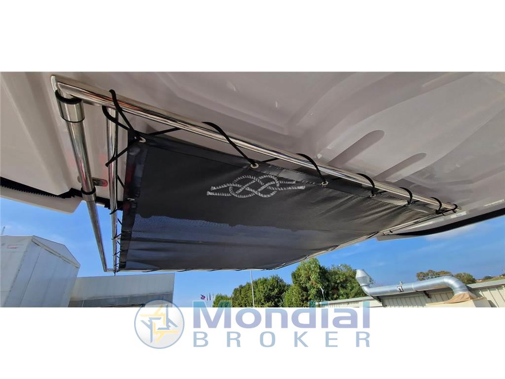 T-top - elica di prua Side Power con batteria dedicata - verricello elettrico - autoclave - ancora in acciaio Ultra Marine Anchor 12 kg e catena zincata 50 metri - impianto stereo Fusion (controllo plancia e cabina) - prese USB e 220V (interne ed esterne stagne) - wc elettrico (sottopanca) - cassa acque nere con maceratore - 2 frigo a cassetto Dometic - carica batterie 30A tre uscite con ripartitore di carica - presa 220V banchina - doccia esterna - lavandino (interno) - coperta in Estech - copertura dinette completa con porta - tenda sole prua e poppa - cuscini prendisole prua e poppa - doppia scaletta da bagno di cui una Nautinox con aste di sollevamento - porta pacchi T-top - porta canne - gavone coibentato igloo con scarico acqua a mare - cuscineria completa Silvertext - dinette esterna convertibile con pistoni a gas per il tavolo - luci sotto t-top dimmerabili - cappe copricuscini.