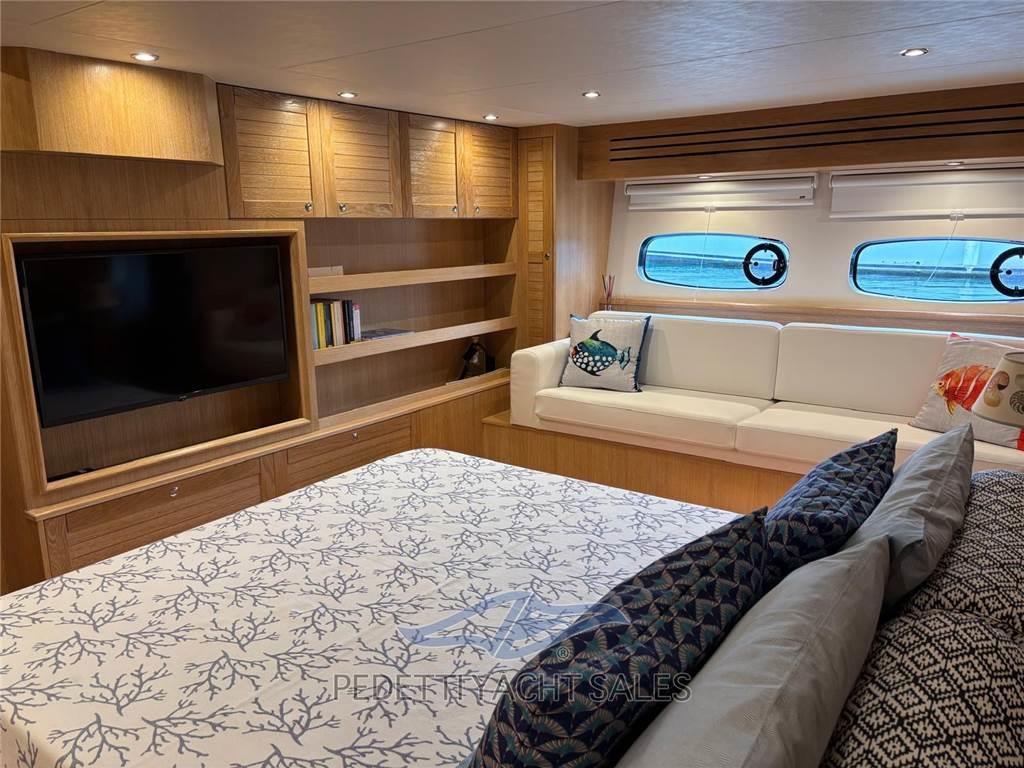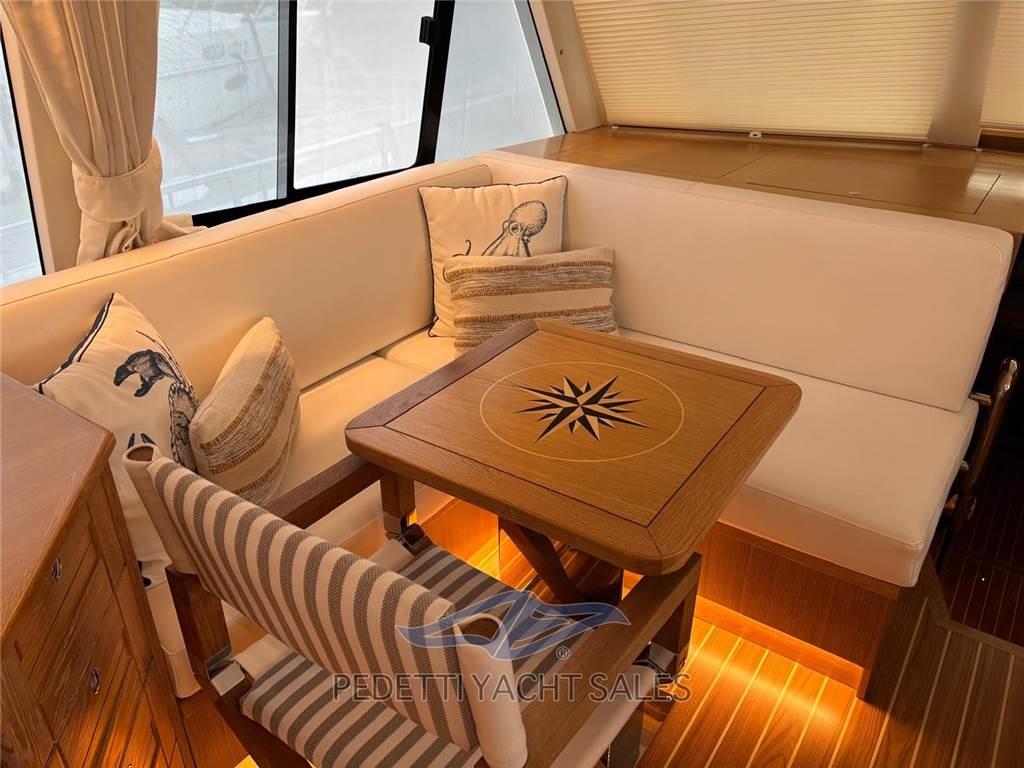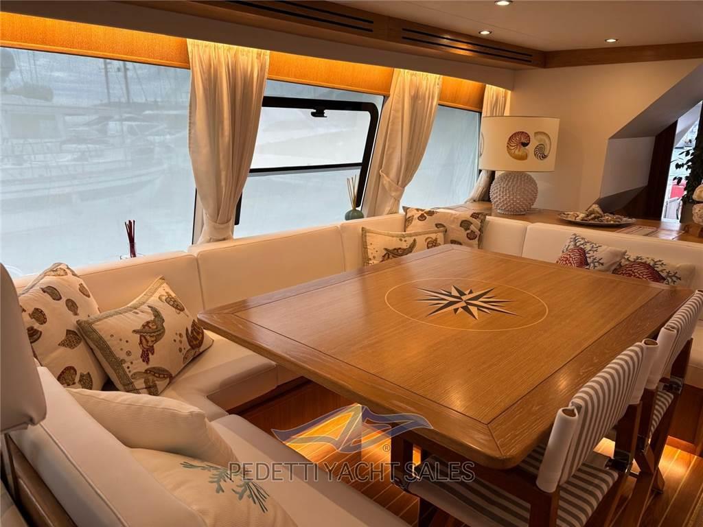 Flybridge con bimini fisso - dinette in pozzetto con ampio tavolo - whinch a poppa - elica di prua e di poppa - passerella a scomparsa - pozzetto in teak