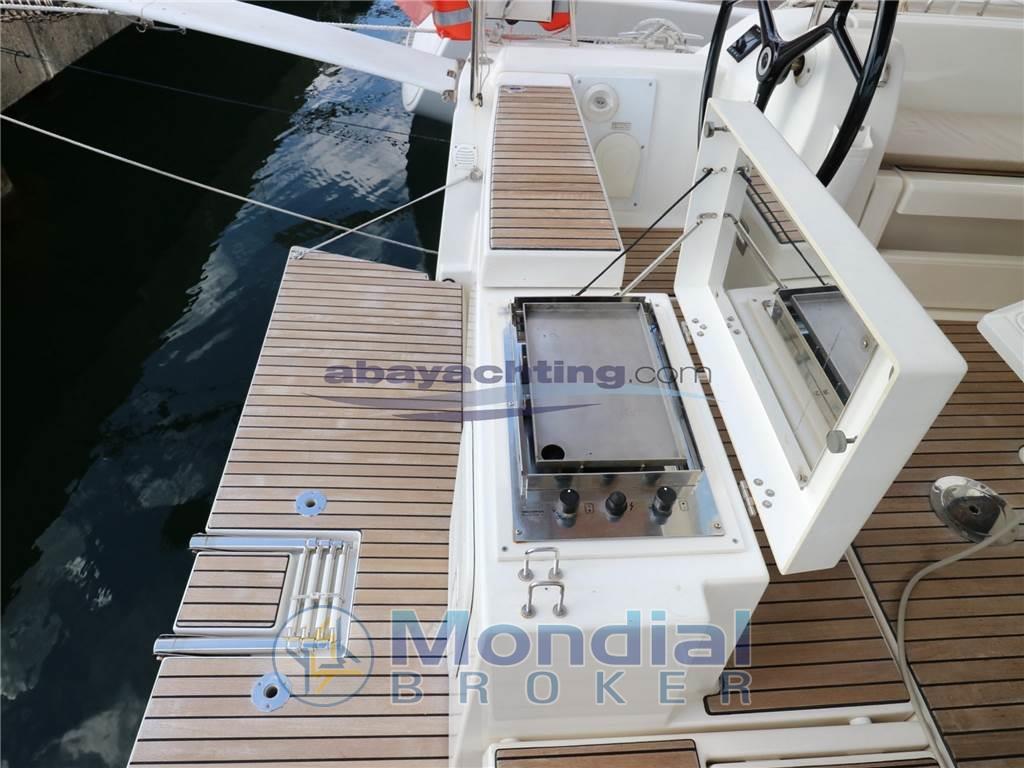 Accessoriata con: elica di prua retrattile, pannelli solari, riscaldamento, inverter, piattaforma di poppa apribile, sedute del pozzetto apribili per creare un prendisole, barbeque in pozzetto, bimini, sprayhood con telo di protezione per i trasparenti ed elettronica completa con doppio GPS esterno 7 e 12 pollici nel tavolo pozzetto più radar ed AIS.