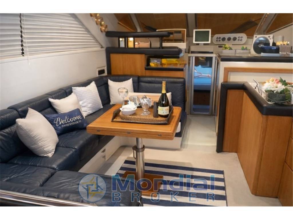LOYAUT MOLTO CONFORTEVOLE CON TRE CABINE E DUE BAGNI, AMPIA DINETTE CONIN PELLE BLU, CABINA ARMATORIALE CON BAGNO PRIVATO E DUE CABINE CON SECONDO BAGNO DOCCIA,MOQUETTE LAVATA OGNI ANNO E ILLUMINAZIONE INTERNA CON FARETTI REGGIANI