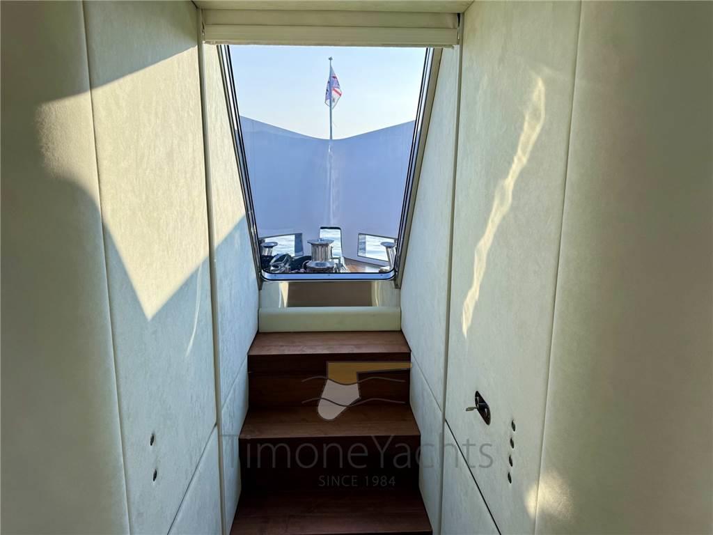 Il salone principale è una villa sull'acqua, con finestre così grandi che sarà difficile distinguere l'interno/esterno. L'enorme salone ha due nicchie a centro nave, che favoriranno l'imbarco dei vostri ospiti con stile se ormeggiati "all' inglese". Al main deck c'è chiaramente l'appartamento master dove, ebbene sì, c'è una porta a vetri apribile elettricamente che porta sul ponte esterno anteriore. Per non considerare l'ampio corridoio d'ingresso con cui inizia l'area padronale.