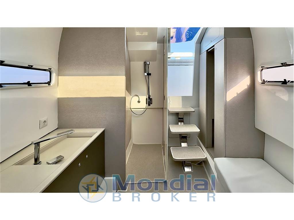 2x Suzuki DF300 BMD Manette elettroniche. Piano di coperta rivestito con teak sintetico. Falchetta rivestita in teak sintetico.