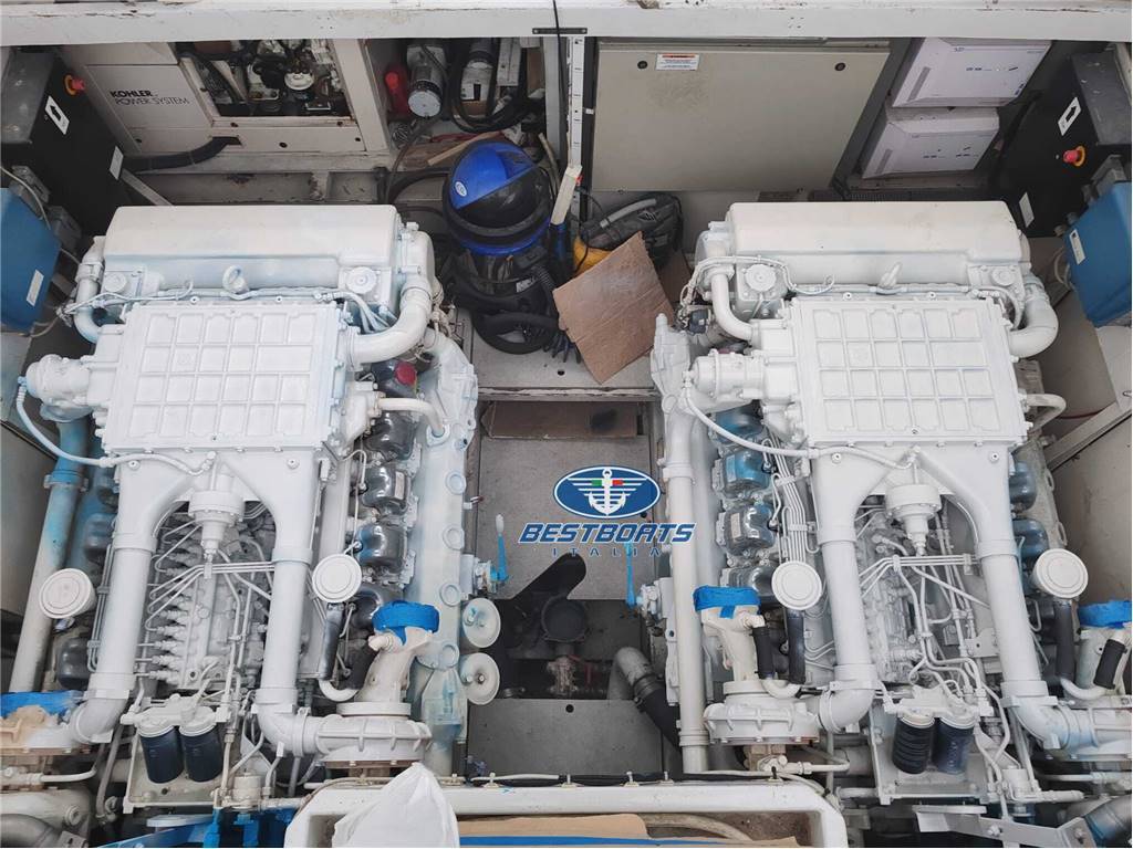 Allarme motore, Allarme sentina, Ancora, Angolo barra, Antenna radar, Bussola, Caricabatterie, Doccia esterna, Ecoscandaglio, Elica di prua - bow thruster, Flap idraulici, 2 GPS (nuovi), Hard top, Impianto antincendio, Indicatori Flaps, Pilota automatico, Pompa di sentina automatica, Pompa di sentina elettrica, Pozzetto Teak, Presa 220V banchina, Radar, Radio VHF, Salpa Ancore Elettrico, Scaletta da bagno, Tavolo pozzetto, Tromba, Winch tonneggio di poppa