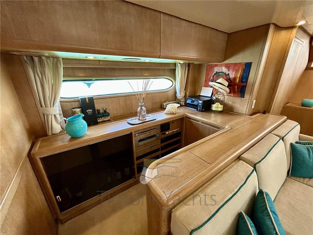 Altoparlanti, Antenna Satellitare TV, Aria condizionata, BBQ/ Grill, Boiler, Copripozzetto, Cuscineria completa, Cuscineria di poppa, Cuscineria di prua, Cuscineria fly, Cuscineria Pozzetto, Digitale Terrestre, Frigorifero esterno, Frigorifero interno, Home Theater, Inverter, Lavastoviglie, Lavatrice, Macchina caffè, Meccanismo saliscendi per TV, Pavimento interno in legno, Piastra in vetroceramica, Prese interne 12v, Prese interne 220v, Radio AM/FM, Riscaldamento, Serbatoio Acque Nere, Tenda Elettrica, Tendalino, TV, 5 WC marino elettrico (+ crew), Winecooler