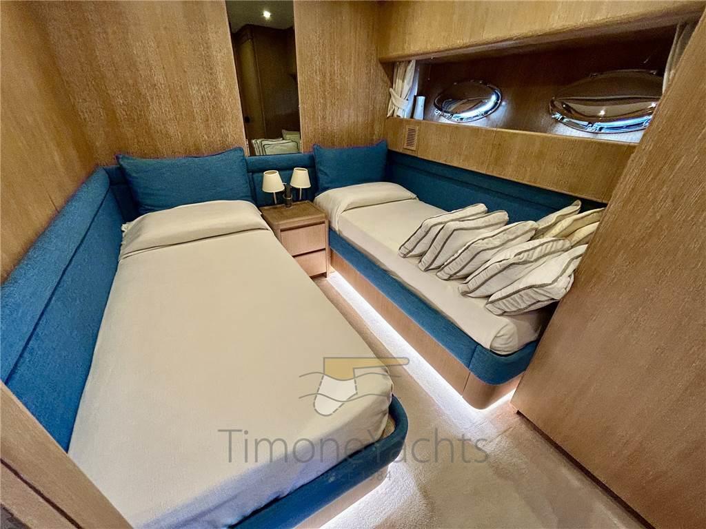 2 Matrimoniale italiana, 1 Matrimoniale francese, 1 Doppia in piano, 2 Cabina equipaggio, 1 Toilette con doccia, 1 Cucina, 1 Salone, 2 Toilette Equipaggio, 3 Toilette doccia no bidet