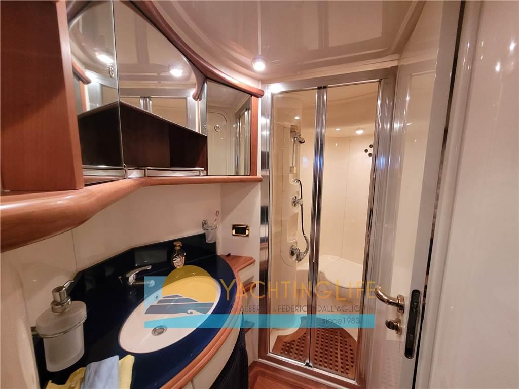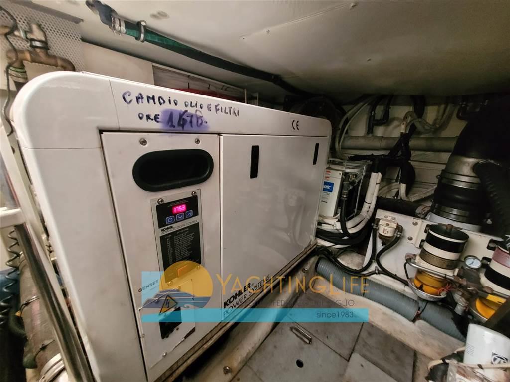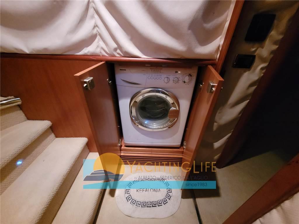 Altoparlanti, Antenna Satellitare TV, Aria condizionata, Bimini, Boiler, Congelatore, Copripozzetto, Cucina, Cuscineria completa, Forno, 2 Frigorifero esterno (sul fly), Frigorifero interno, ICE Maker, Impianto acque nere, Impianto TV, Inverter, Lavasciuga, Lavastoviglie, Piastra in vetroceramica, Prese interne 12v, Prese interne 220v, Riscaldamento, Serbatoio Acque Nere, Stereo, Teli copri finestra, Tendalino, 2 TV, 3 WC marino elettrico, Zattera di salvataggio