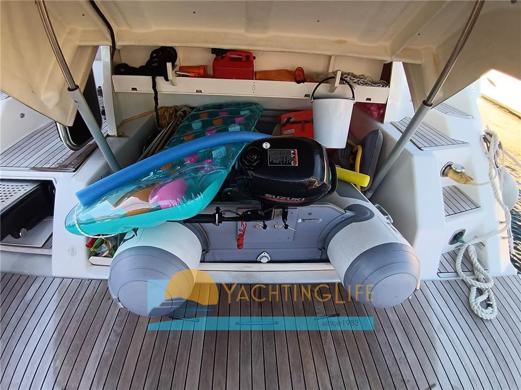 Allarme motore, Allarme sentina, Ancora, Angolo barra, Autoclave, Autogonfiabile, Batterie, Bussola, Caricabatterie, Comando motori elettronico, Doccia esterna, Ecoscandaglio, Elica di prua - bow thruster, Flap elettrici, Garage per tender, GPS, Hard top, Impianto antincendio, Indicatori Flaps, Joystick, Lavandino nel Pozzetto, Luci di cortesia, Luci di navigazione, Luci subacquee, Passerella (idraulica), Piattaforma (idraulica), Pilota automatico, Pompa di sentina automatica, Pompa di sentina elettrica, Pozzetto Teak, Presa 220V banchina, Radio VHF, Salpa Ancore Elettrico, Scaletta da bagno, Tavolo pozzetto, Tender (e motore), Tromba
