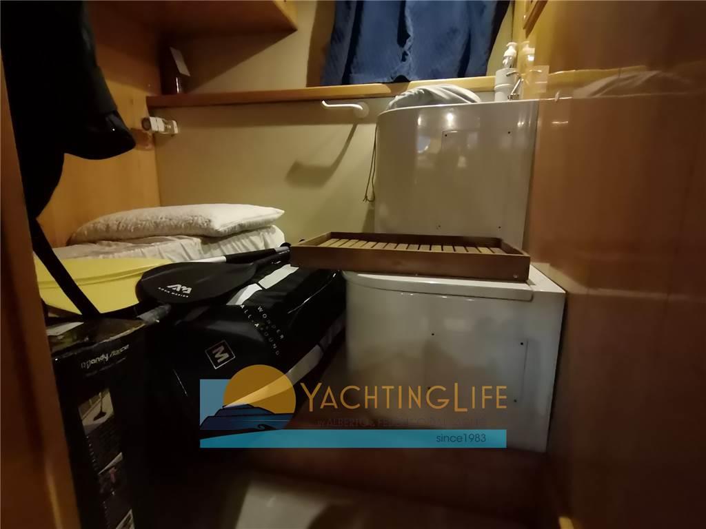 Allarme motore, Allarme sentina, 2 Ancora, Angolo barra, Autoclave, Autogonfiabile, Batterie, Bussola, Caricabatterie (2020), Contamiglia, 2 Doccia esterna (a poppa e sul fly), Doppia timoneria, Ecoscandaglio, Elica di poppa - stern thruster, Elica di prua - bow thruster, 2 Elica di rispetto, Flap idraulici, GPS (2020), Indicatori Flaps, Lavaggio catena, Luci subacquee (2019), Passerella (idraulica rinforzata), Piattaforma (allungata), Pilota automatico (2020), Pompa di sentina automatica, Pompa di sentina manuale, Pozzetto Teak, Presa 220V banchina, Radar, Raddrizzatore, Radio VHF, Salpa Ancore Elettrico, Scaletta da bagno, Tavolo pozzetto, Tender (320 Eurovinil e motore 25hp Mercury con cavi manetta nuovi), Tromba, Winch tonneggio di poppa
