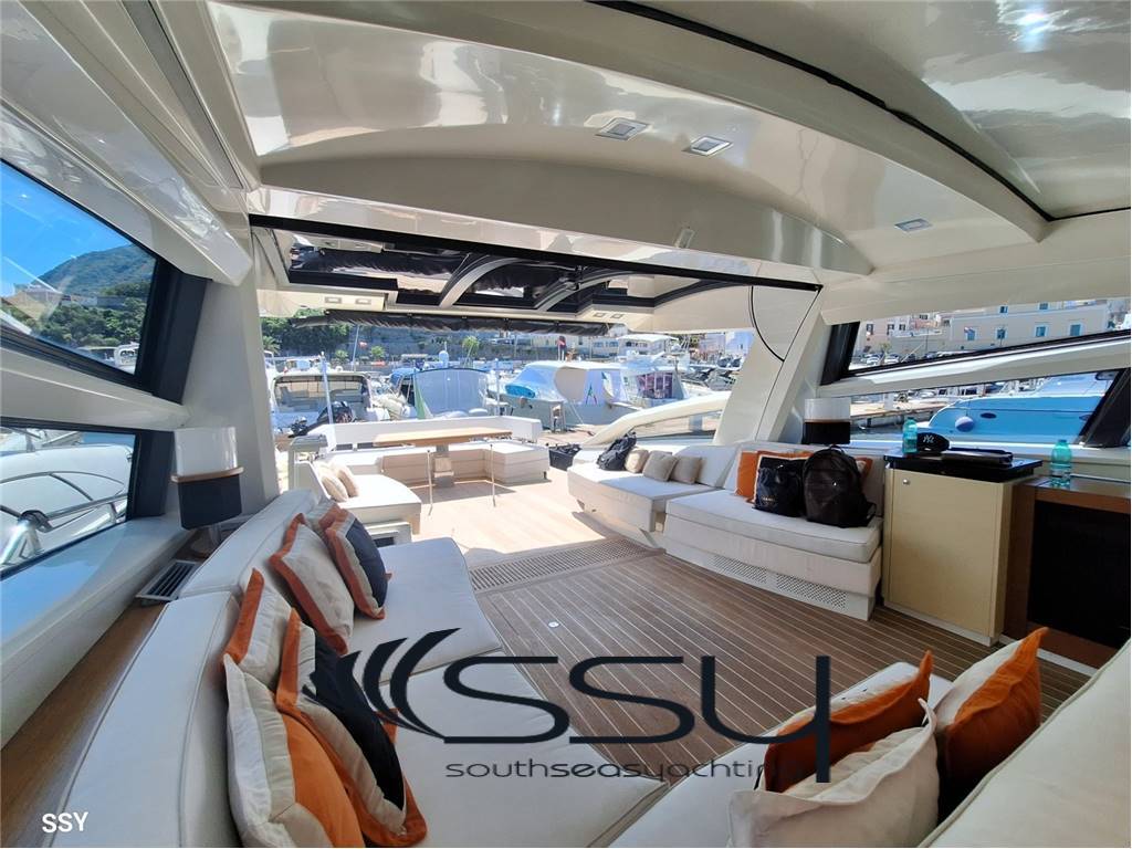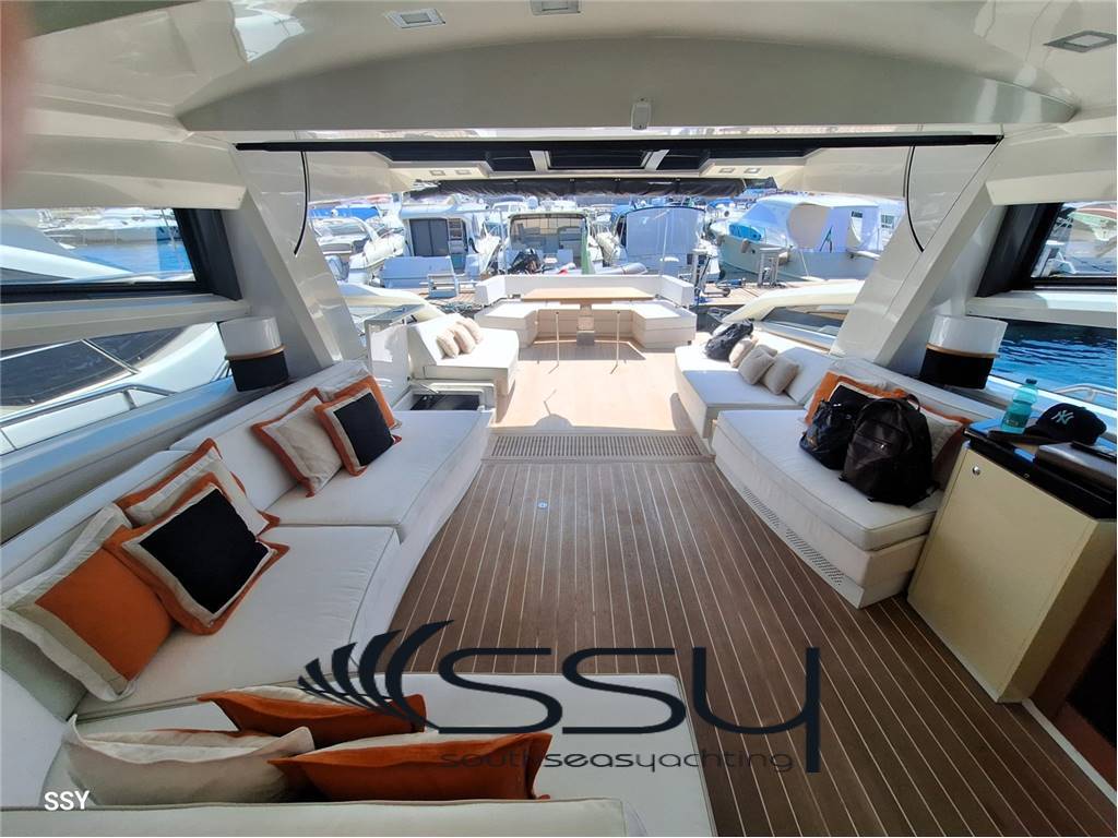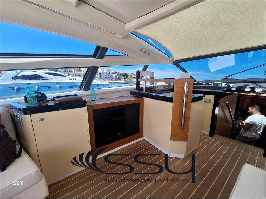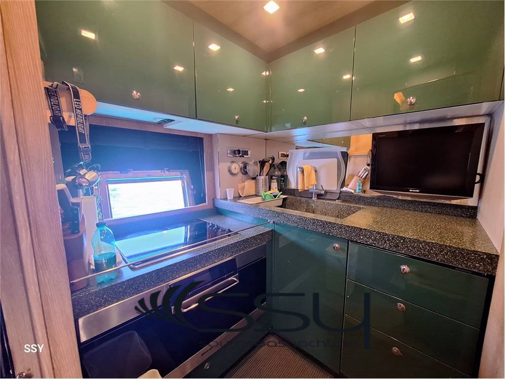 Spaziosissimo salone connesso al pozzetto da una porta con vetrata interamente apribile elettricamente, due divani contrapposti di cui uno angolare e l’altro dritto, angolo TV con Sony Bravia, decoder satellitare, impianto stereo Fusion, angolo bar con lavello, icemaker e frigobar Vitrifrigo, due sedute guida di cui a regolazione elettrica + divano di poppa con tavolo telescopico trasformabile in prendisole;
