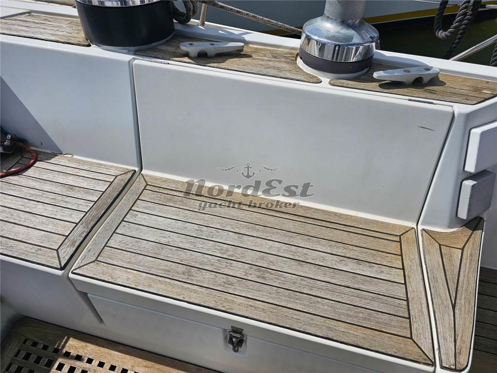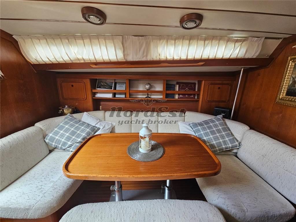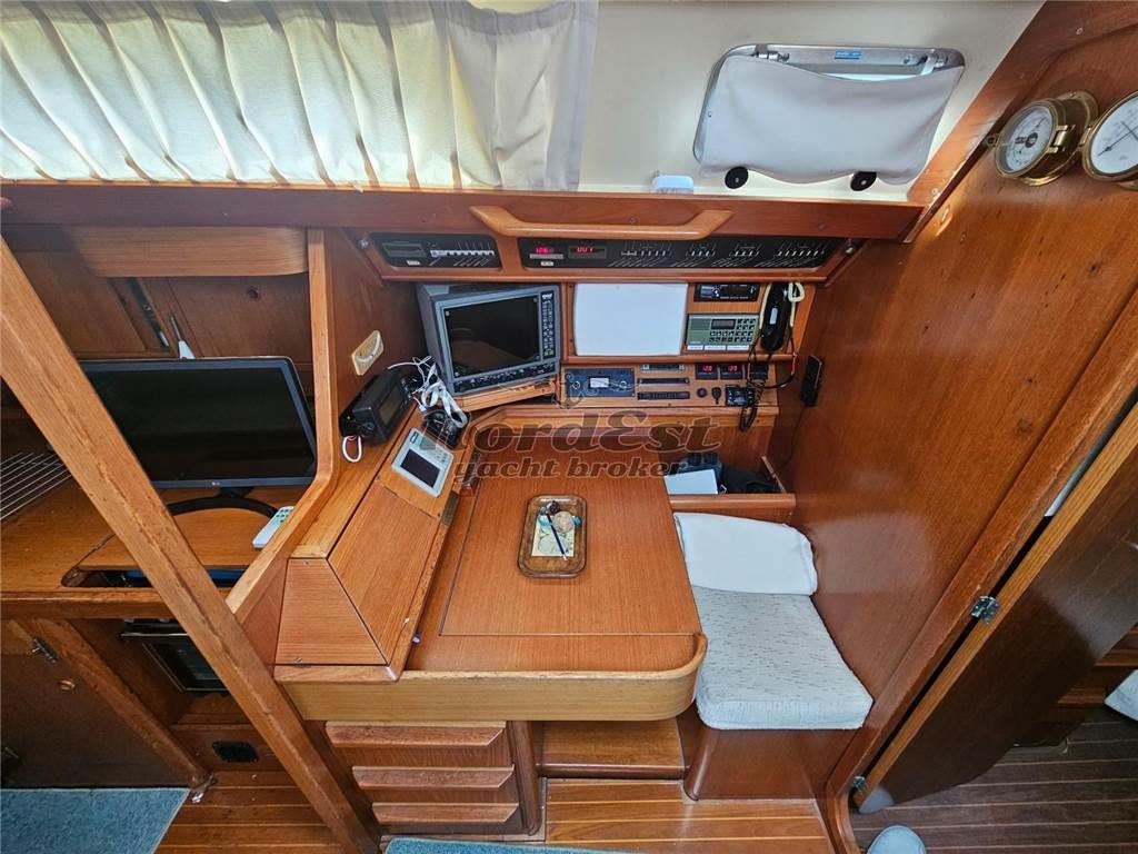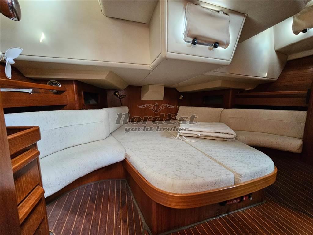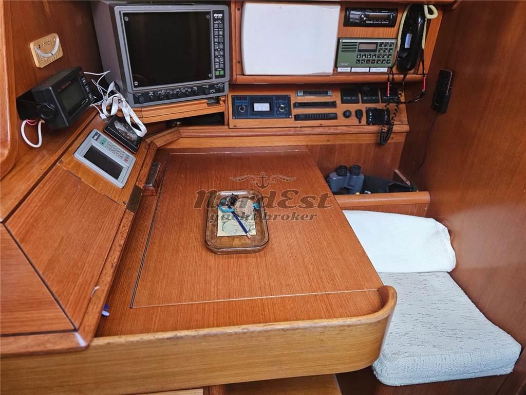 Nord Est Yacht Broker propone in vendita un'affascinante Grand Soleil 45 (design Frers) del prestigioso Cantiere del Pardo, anno 1989. L'imbarcazione misura 13.44 metri di lunghezza e ha beneficiato di recenti lavori nel 2024 che includono: cuffia nuova, invertitore revisionato, raiser sostituito, installazione di Max Prop abbattibile, nuovo GPS Garmin, revisione del pilota automatico, nuove luci di ponte a LED, illuminazione interna a LED e sprayhood bianco nuovo. La barca è inoltre dotata di gennaker e tangone, tender (senza motore) e bimini blu. Il motore è un Perkins da 60 HP con circa 3200 ore moto. Dispone di 3 cabine, 2 servizi e offre 6+2 posti letto. Bandiera italiana, annotazioni di sicurezza valide fino al 2027.