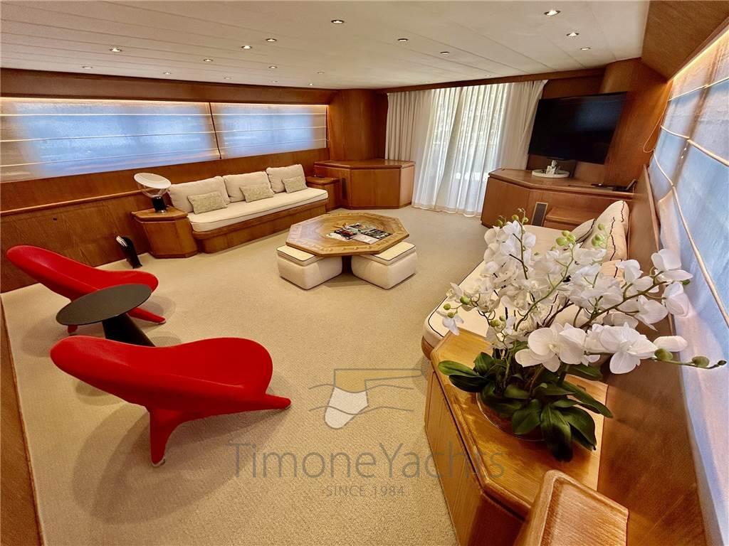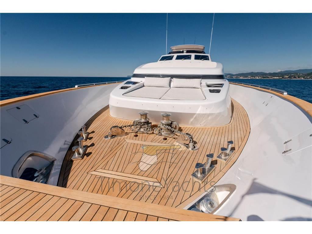 AIS, Antenna radar, Camminamenti laterali in teak, Contametri catena, Display, Doccia esterna, Elica di prua - bow thruster, Flap idraulici, Gruette per tender su fly, Impianto antincendio, Indicatori Flaps, Luci di cortesia, Luci di navigazione, Luci subacquee, Passerella, Piattaforma, Pilota automatico, Ponte in teak, Porta ingresso, Porta laterale, Pozzetto Teak, Radar, Radio VHF, Sistema Depurazione acque nere, SSB, Stabilizzatori (CMC MARINE srl type SE 060-120HS ZERO), Stazione vento, 2 Tavolo pozzetto, Tromba, Winch tonneggio di poppa