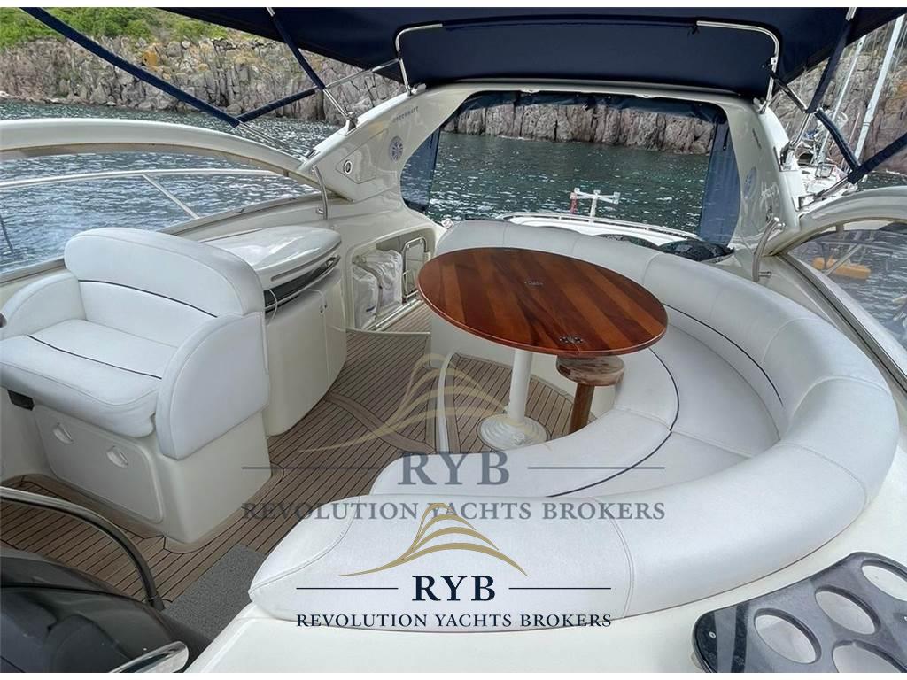 Allarme motore, Ancora, Doccia esterna, Elica di prua - bow thruster, Flap idraulici, Garage per tender, Passerella, Piattaforma, Pompa di sentina automatica, Pompa di sentina elettrica, Pompa di sentina manuale, Pozzetto Teak, Presa 220V banchina, Salpa Ancore Elettrico, Scaletta da bagno, Tavolo pozzetto.