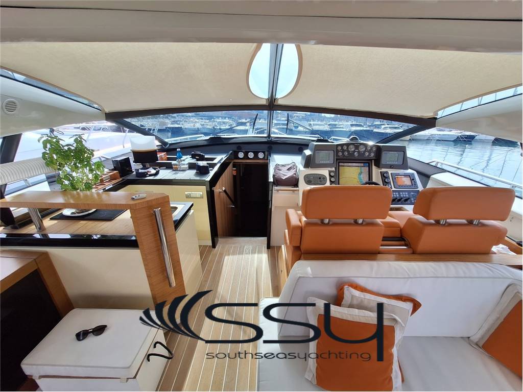 Spaziosissimo salone connesso al pozzetto da una porta con vetrata interamente apribile elettricamente, due divani contrapposti di cui uno angolare e l’altro dritto, angolo TV con Sony Bravia, decoder satellitare, impianto stereo Fusion, angolo bar con lavello, icemaker e frigobar Vitrifrigo, due sedute guida di cui a regolazione elettrica + divano di poppa con tavolo telescopico trasformabile in prendisole;