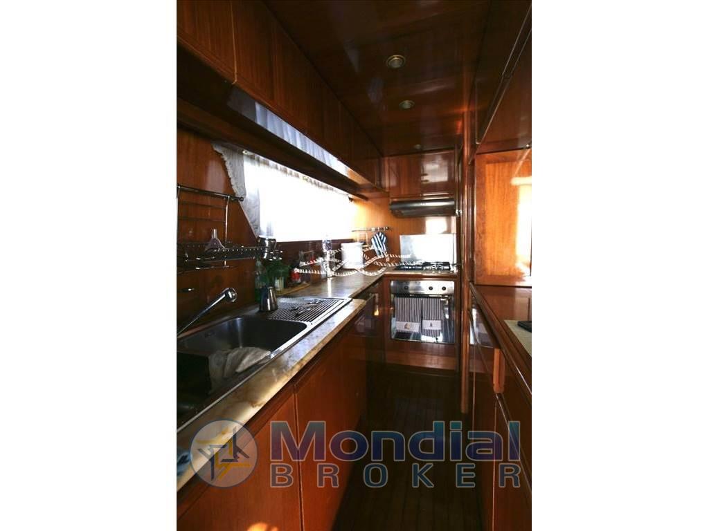 Terza stazione di comando a poppa - elica di prua Vetus - pannello elettronico Boening per controllo livelli acqua, carburante, cassa acque nere e acque grigie - telecamera per visione sala macchine - aria condizionata - dissalatore Marinco - gruppo elettrogeno Kohler 17 kW e Onan 12 kW - tender con fuoribordo 40 hp Suzuki - passerella elettroidraulica Morsaverio - gruetta fly Morsaverio - lavatrice - WC Tecma ad acqua dolce - 1 frigo e 2 congelatori nel locale anti sala macchine - cucina con frigo freezer forno e piano cottura 4 fuochi a gas - mobile con doppio frigo/ice maker, lavello e piano cottura due fuochi elettrico sul fly - TV - antenna SAT Seatel - decoder SAT.