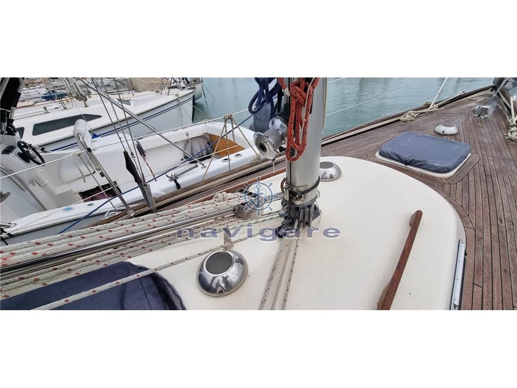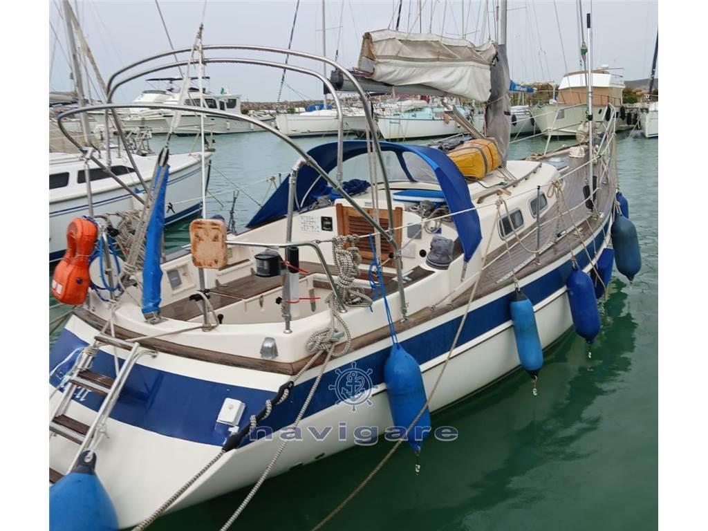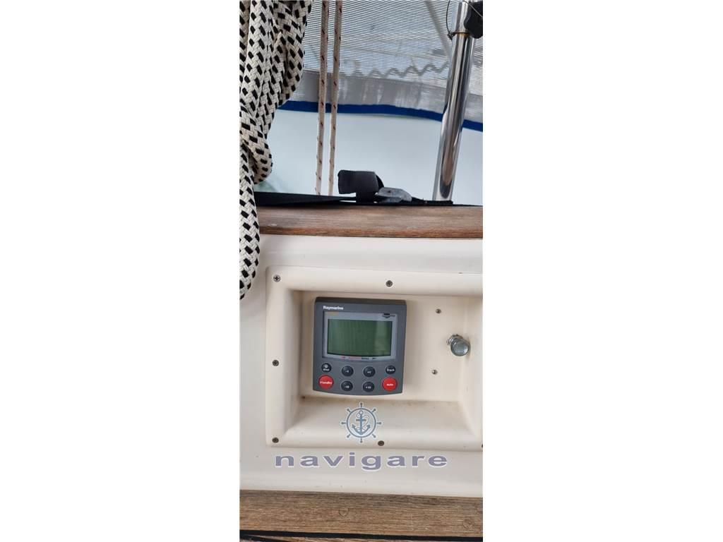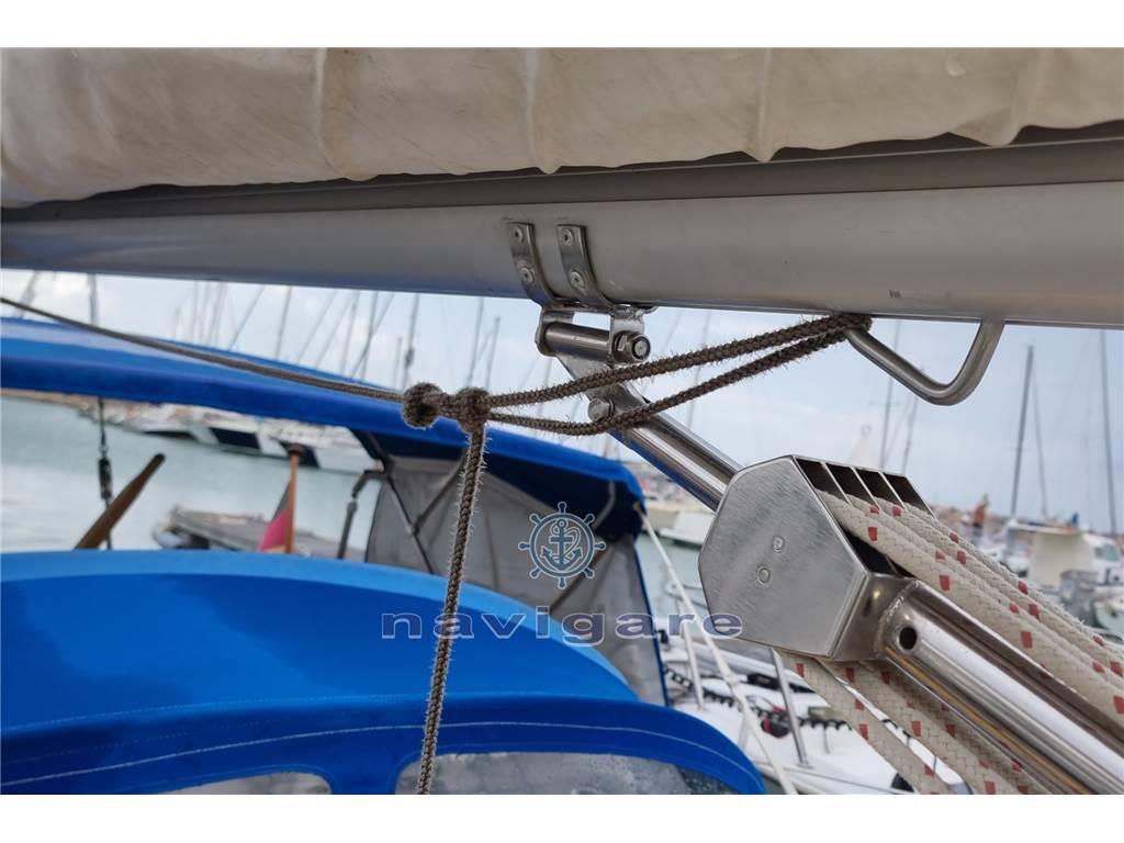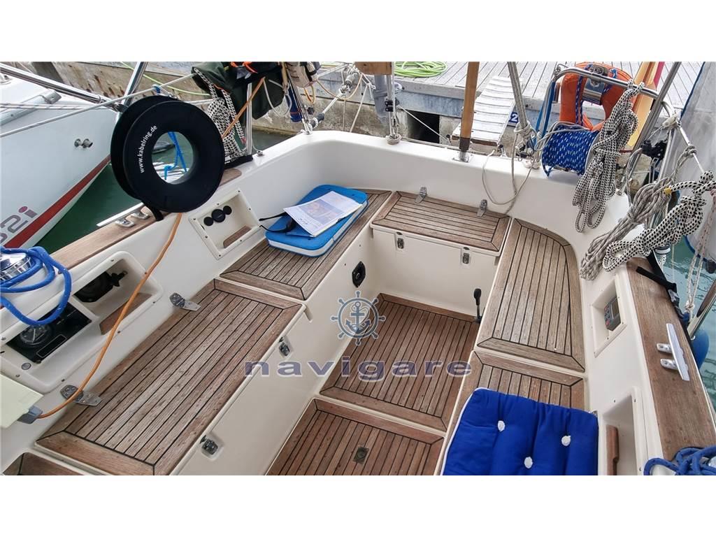 proveniente del Lago di Costanza,. Vele estese: Grande con sistema lazy jack, genoa, genoa di tempesta, grande genoa (nuovo), due gennaker. Volvo Penta diesel a 3 cilindri, gommone con AB Honda, sistema VHF, verricello elettrico, grande bimini, pilota automatico