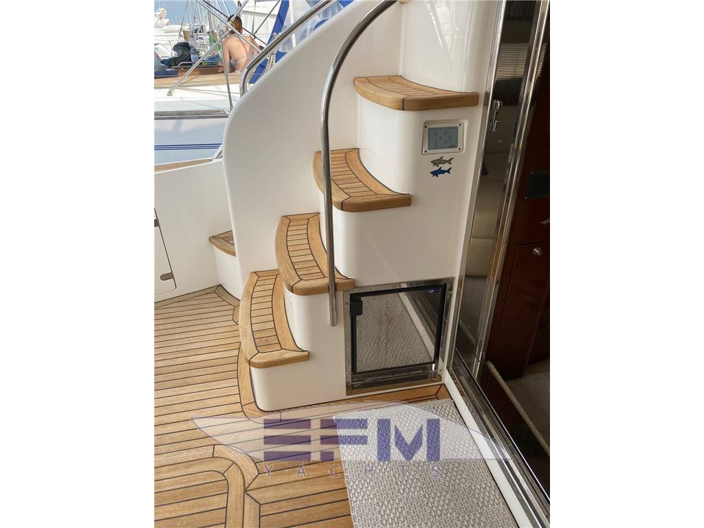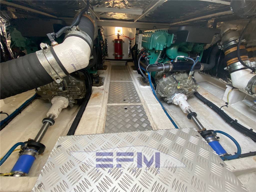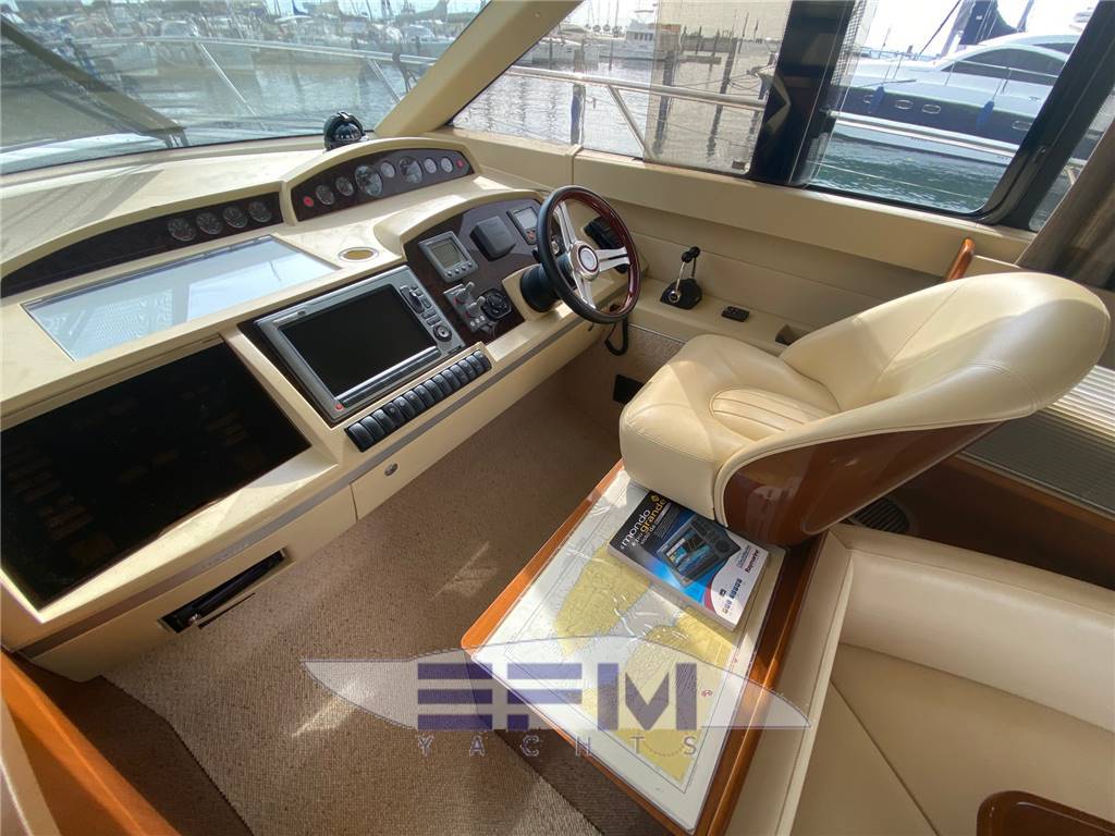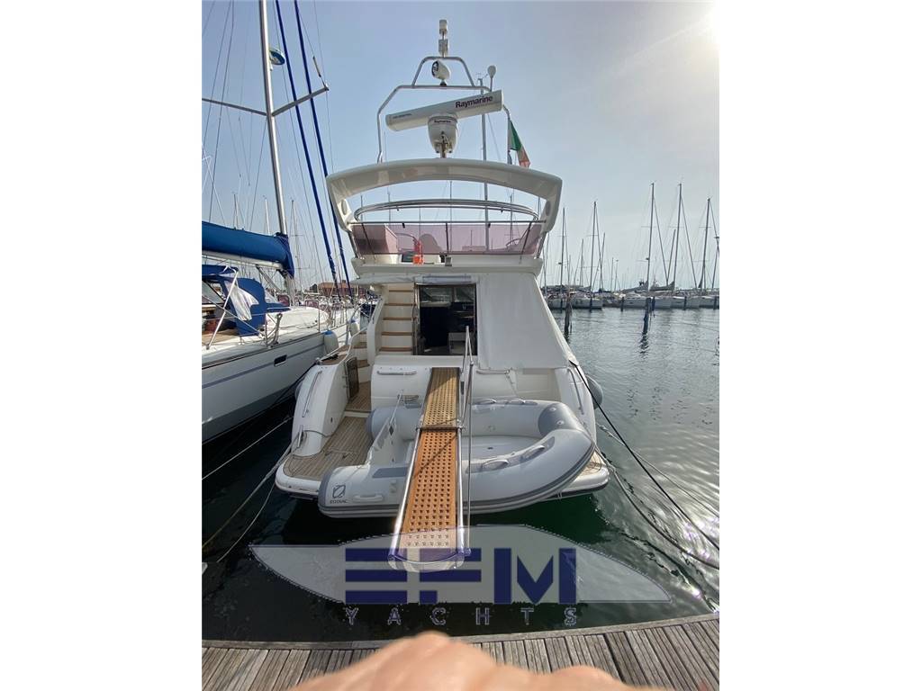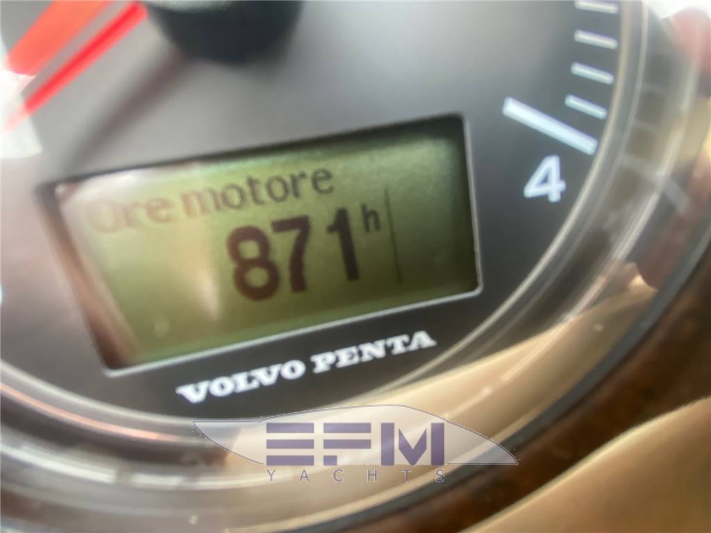 Stunning & classic flybridge kept in "as new" condition by her careful and scrupulous second owner. Twin Volvo Penta D6-435hp (870h)regulary serviced each year. Original end 2021 photos - Classic interiors in glossy mahogany and light leather sofas , lightly used and in perfect condition - FULLY EQUIPPED - Bow and stern thruster - Hydraulic flaps - Automatic A/Conditioning with centralized control - ONAN 11 kw generator (only 421h) - Swim platform, Cockpit and fly steps in solid teak - Oversized hydraulic gangway with teak inserts - Radar antenna 72 mg. - Tv antenna - Mobile fly with fridge, sink and barbecue - Complete Raymarine electronic instrumentation and double repetition on the fly with: Plotter, Autopilot and Tridata - Complete kitchen with: 2-burner plate, double sink, oven with grill and 50 Lt fridge - External cushions, bow sundeck and fly sofas in white ski as new - Extended teak swim platform - Courtesy lights in cockpit - Boiler - Complete winter cockpit cover closure - Bimini Top on fly - Complete covers and awnings - ICEMAKER in cockpit - Swim ladder - Left electric winch. stern warping - 220v internal sockets - Heating - Direct dock water intake connection - Full Raymarine electronic instruments (plotter , autopilot , multi function) also repeted on fly. Double SIMRAD VHF radio also on the fly - Electric windlass - CQR anchor + 70 m chain of 10 - Mixed shower aft - Black water purification system - Italian complete safety equipment for 8 people.