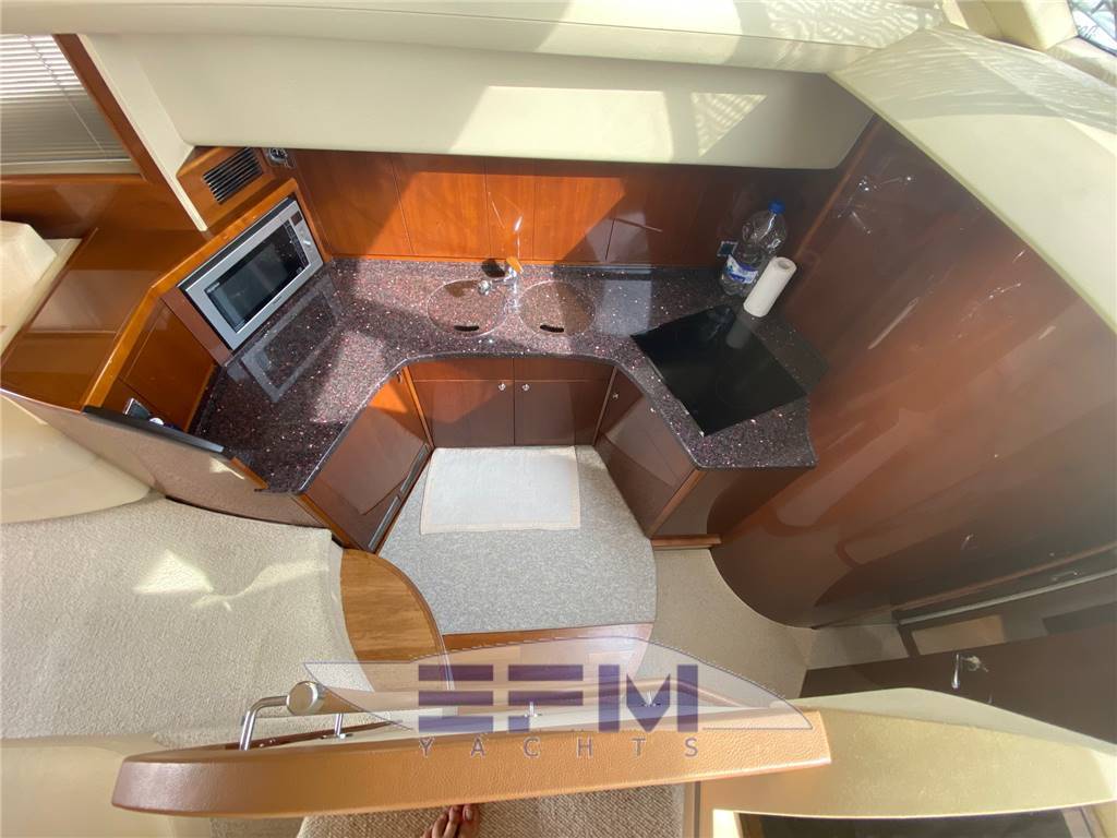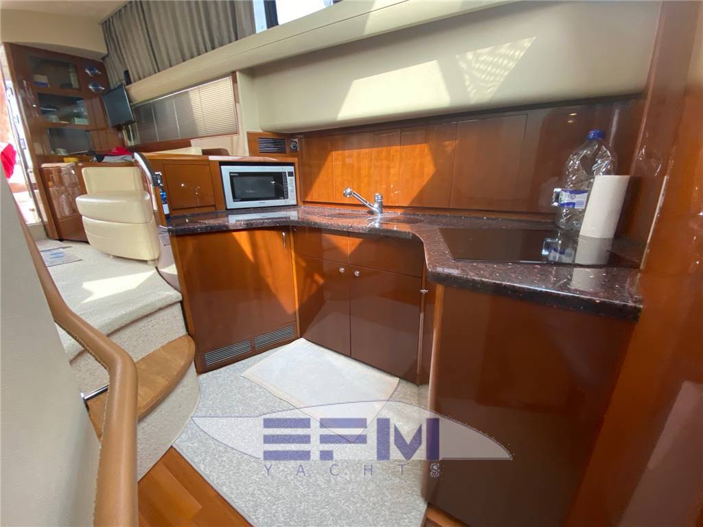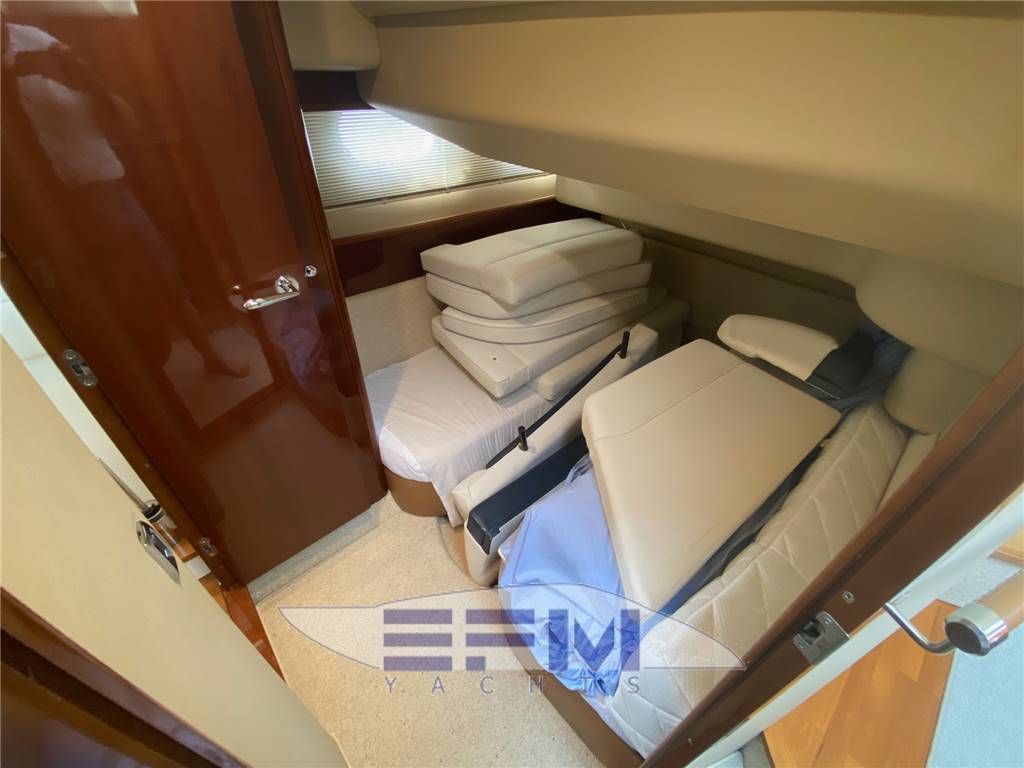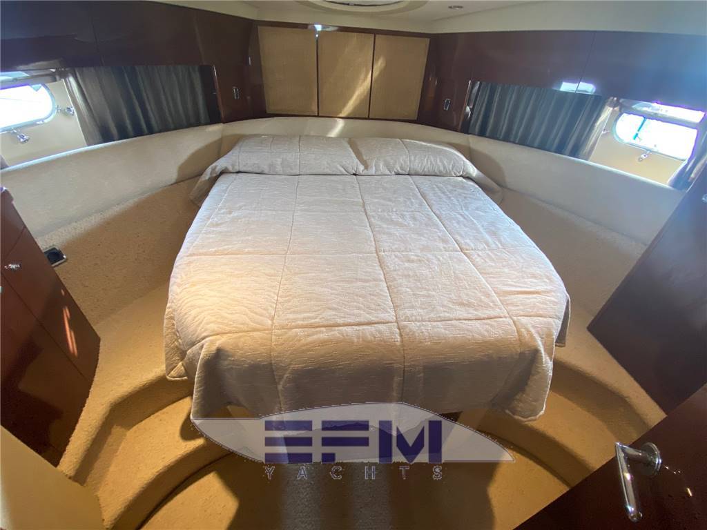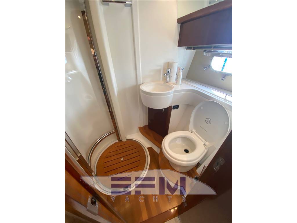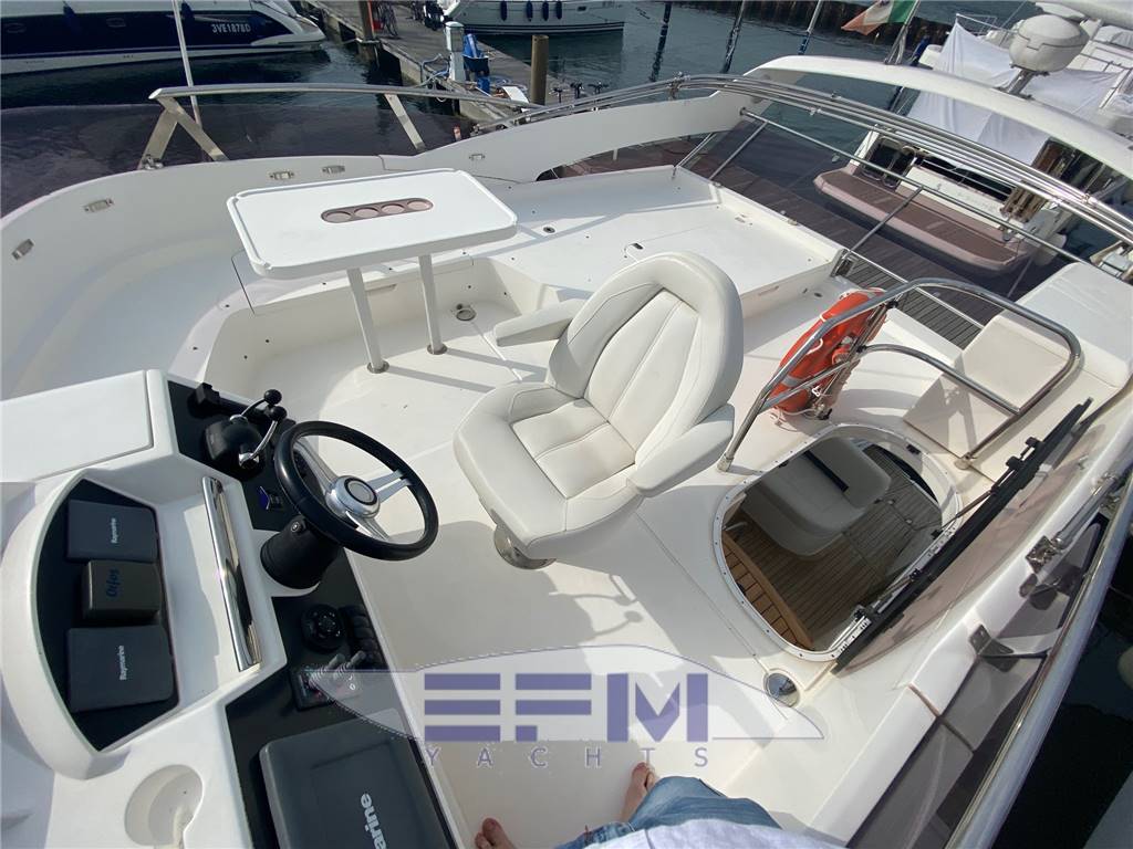 Stunning & classic flybridge kept in "as new" condition by her careful and scrupulous second owner. Twin Volvo Penta D6-435hp (870h)regulary serviced each year. Original end 2021 photos - Classic interiors in glossy mahogany and light leather sofas , lightly used and in perfect condition - FULLY EQUIPPED - Bow and stern thruster - Hydraulic flaps - Automatic A/Conditioning with centralized control - ONAN 11 kw generator (only 421h) - Swim platform, Cockpit and fly steps in solid teak - Oversized hydraulic gangway with teak inserts - Radar antenna 72 mg. - Tv antenna - Mobile fly with fridge, sink and barbecue - Complete Raymarine electronic instrumentation and double repetition on the fly with: Plotter, Autopilot and Tridata - Complete kitchen with: 2-burner plate, double sink, oven with grill and 50 Lt fridge - External cushions, bow sundeck and fly sofas in white ski as new - Extended teak swim platform - Courtesy lights in cockpit - Boiler - Complete winter cockpit cover closure - Bimini Top on fly - Complete covers and awnings - ICEMAKER in cockpit - Swim ladder - Left electric winch. stern warping - 220v internal sockets - Heating - Direct dock water intake connection - Full Raymarine electronic instruments (plotter , autopilot , multi function) also repeted on fly. Double SIMRAD VHF radio also on the fly - Electric windlass - CQR anchor + 70 m chain of 10 - Mixed shower aft - Black water purification system - Italian complete safety equipment for 8 people.